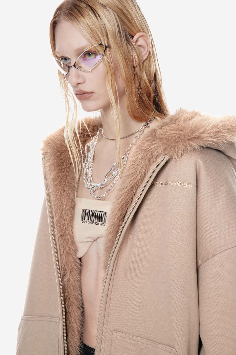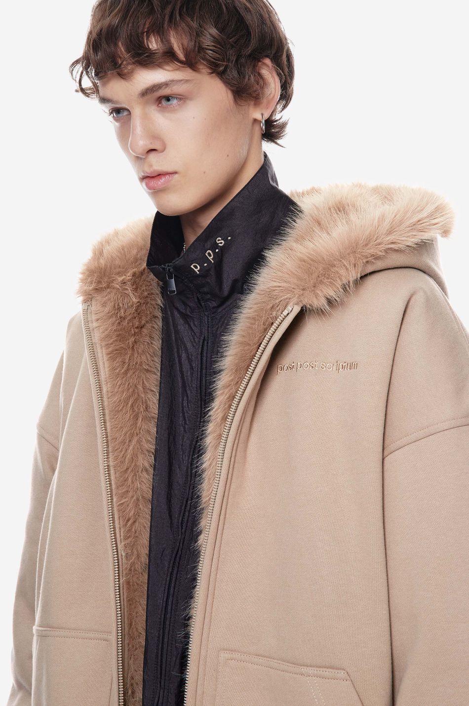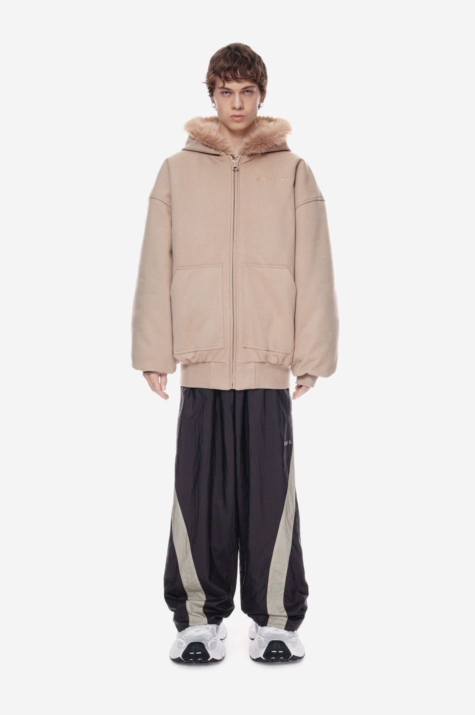 объёмный бомбер фирменного оверсайз кроя с отделкой капюшона искусственным мехом в тон. функциональная молния, карманы-кенгуру и плотные трикотажные манжеты делают модель удобной для повседневного ношения.