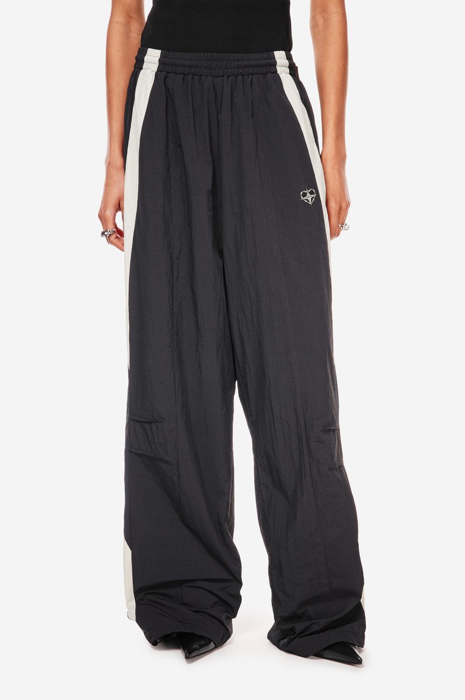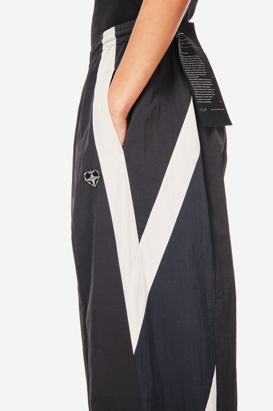 брюки chrome heart — продолжение архивного спортивного кода в эстетике Y2K. широкий силуэт, графичные контрастные вставки и функциональные детали формируют динамичный образ на стыке спорта, урбанистики и индивидуального стиля.