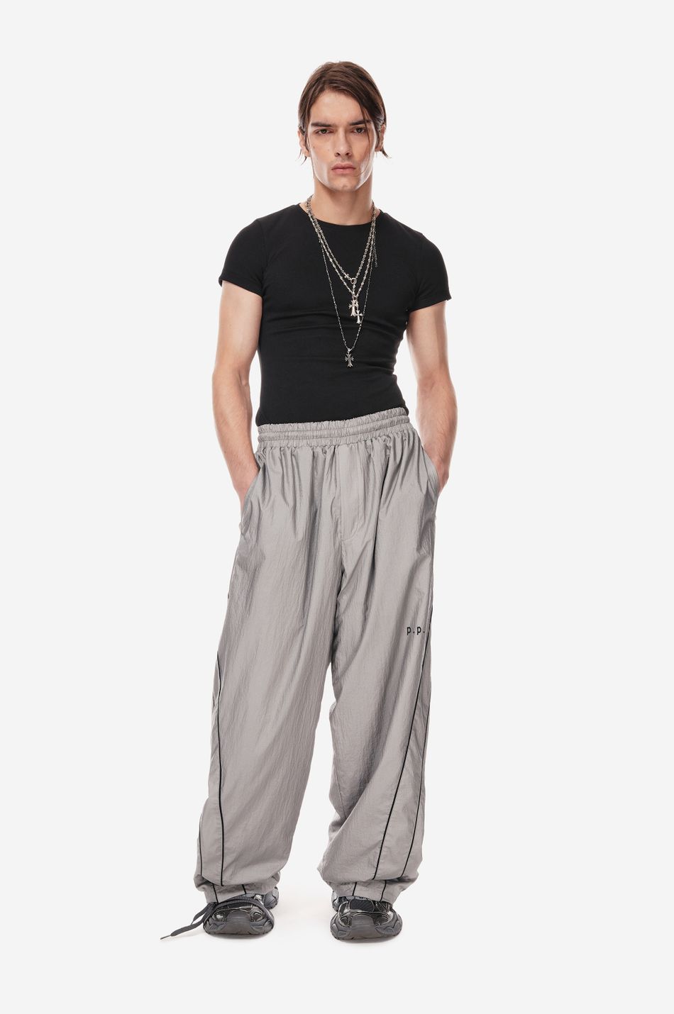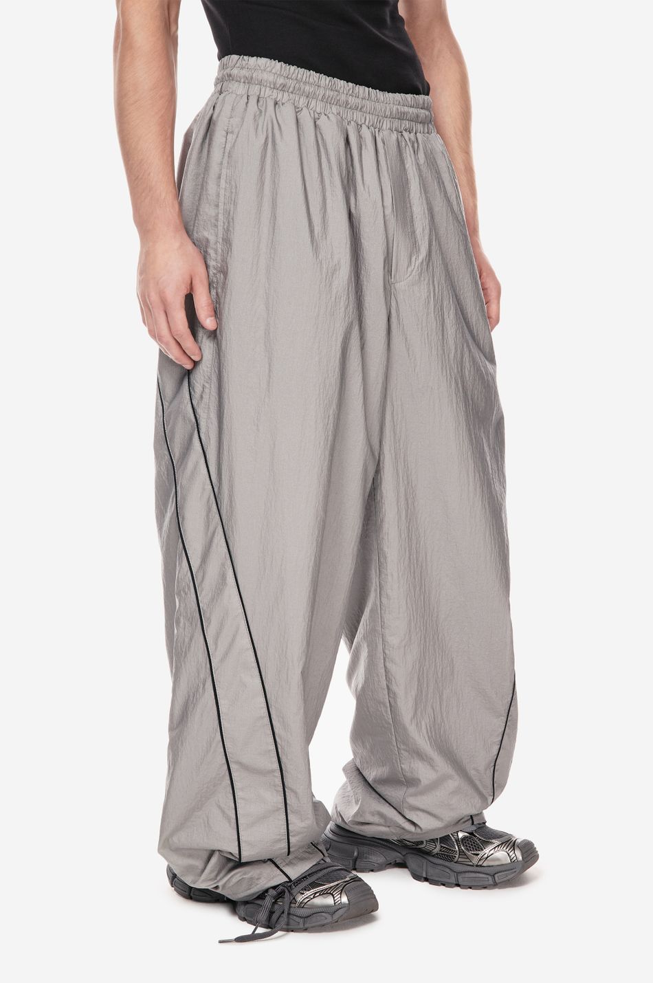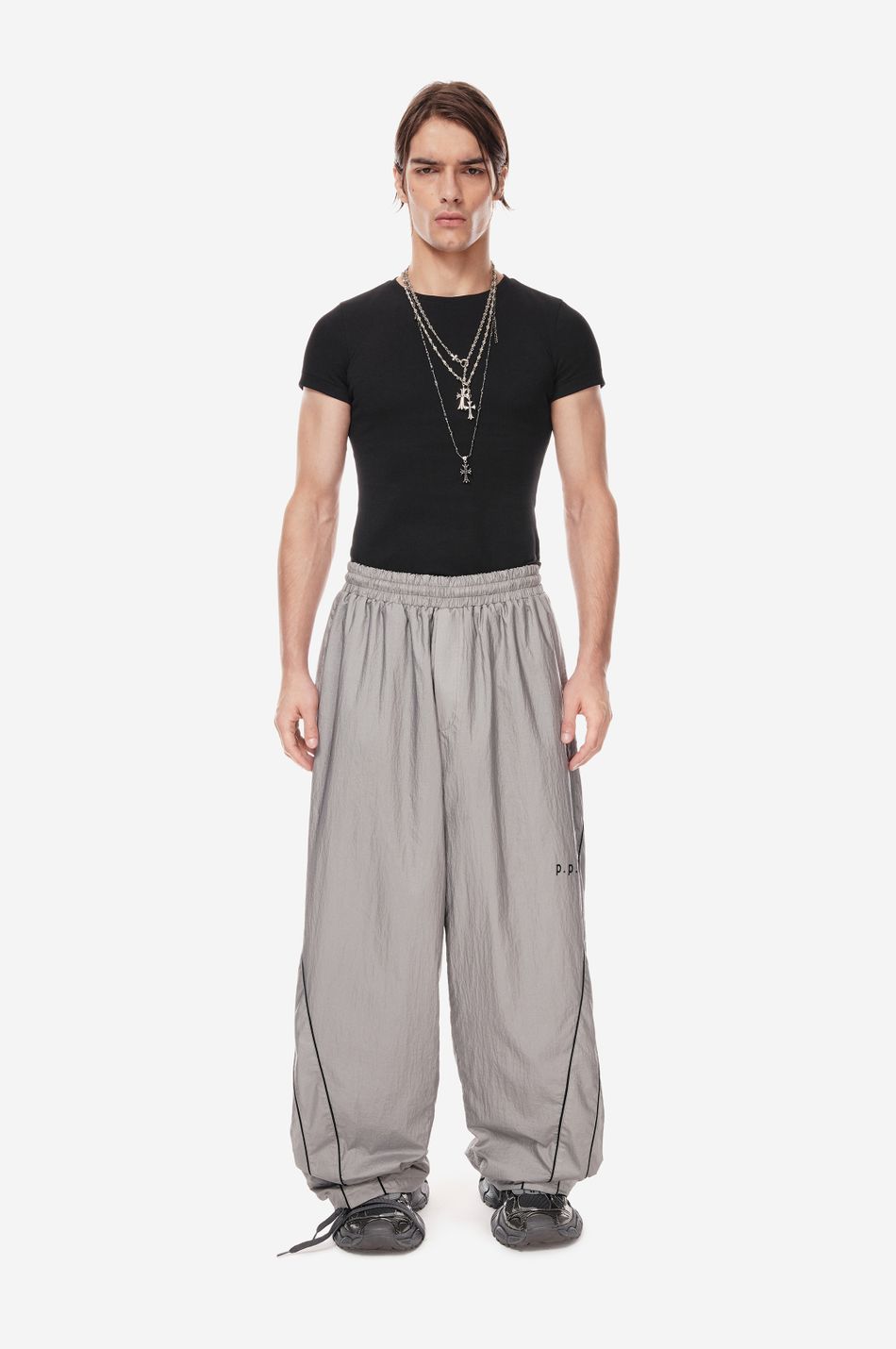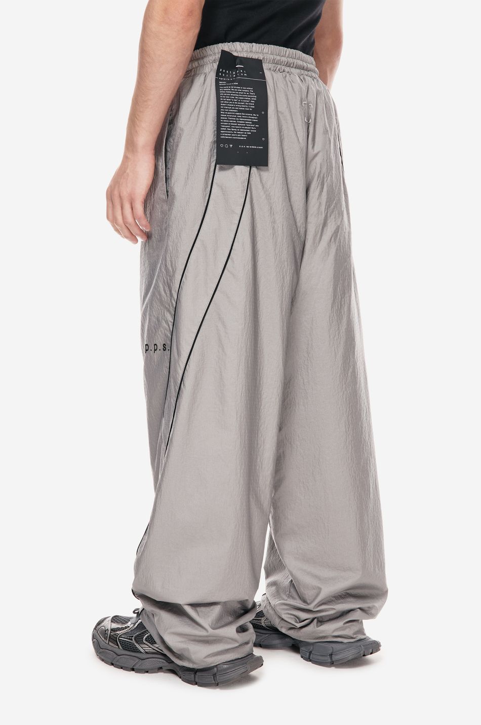 брюки Loop Comfy: широкий крой, контрастные вставки, регулируемый низ. фирменные детали — вышитые скобки и патч-манифест. новый код в коллекции от post post scriptum.