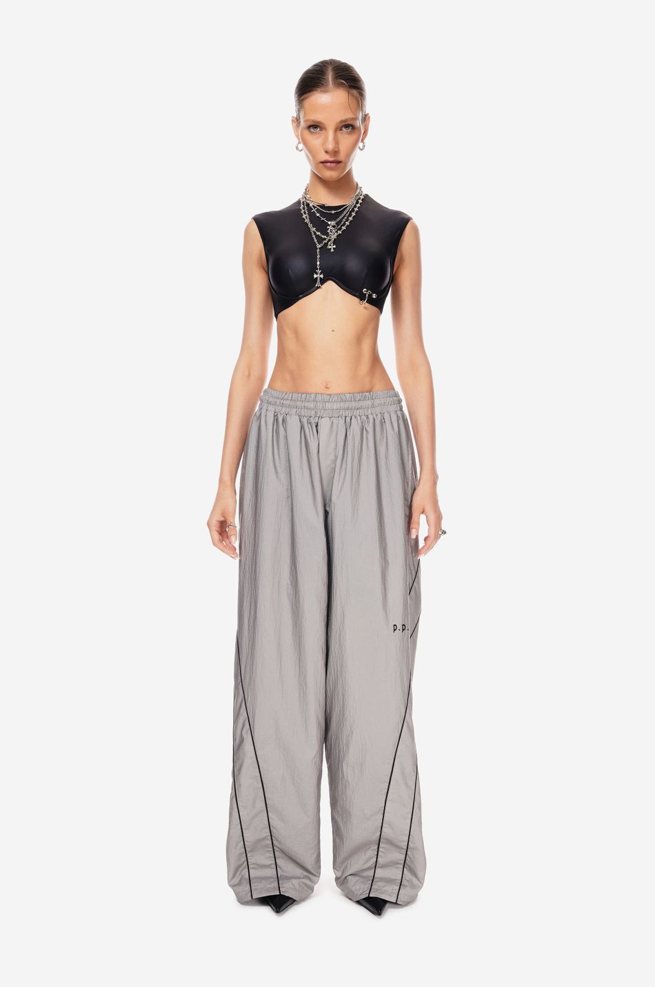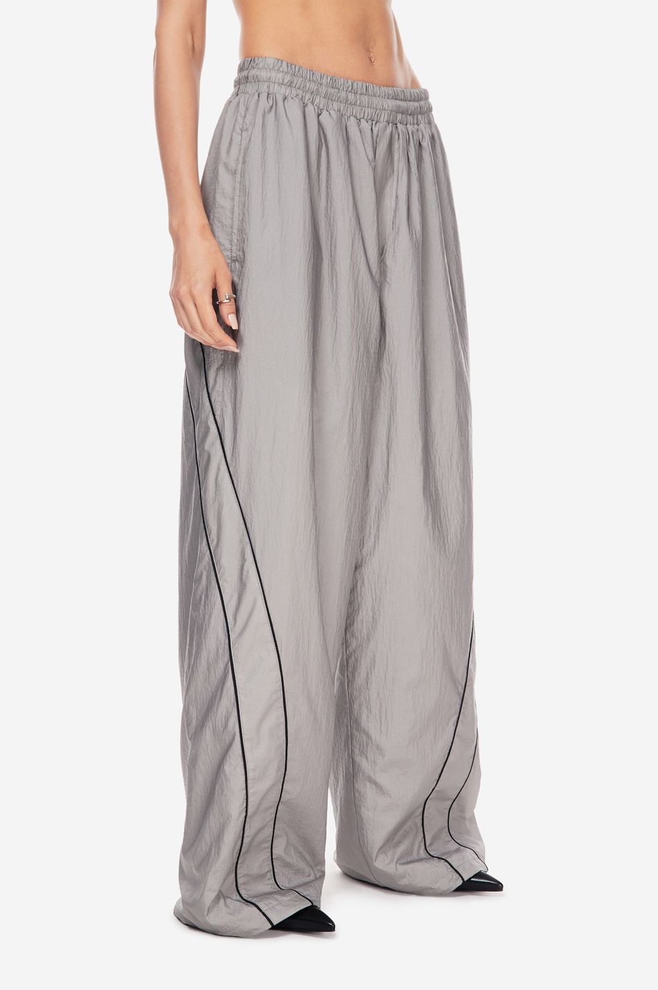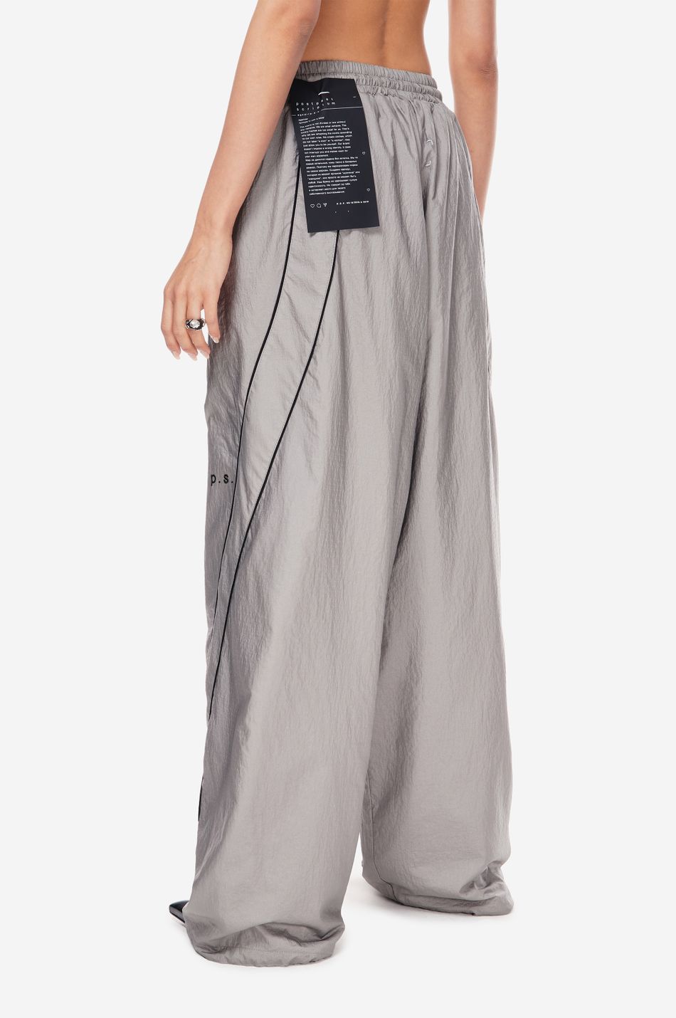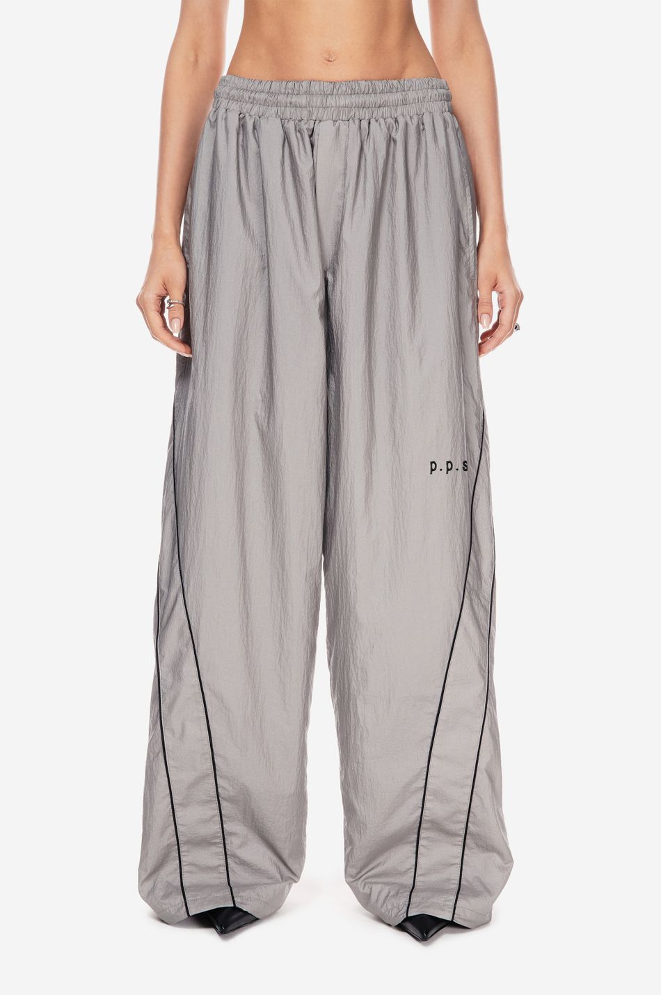 брюки Loop Comfy: широкий крой, контрастные вставки, регулируемый низ. фирменные детали — вышитые скобки и патч-манифест. новый код в коллекции от post post scriptum.