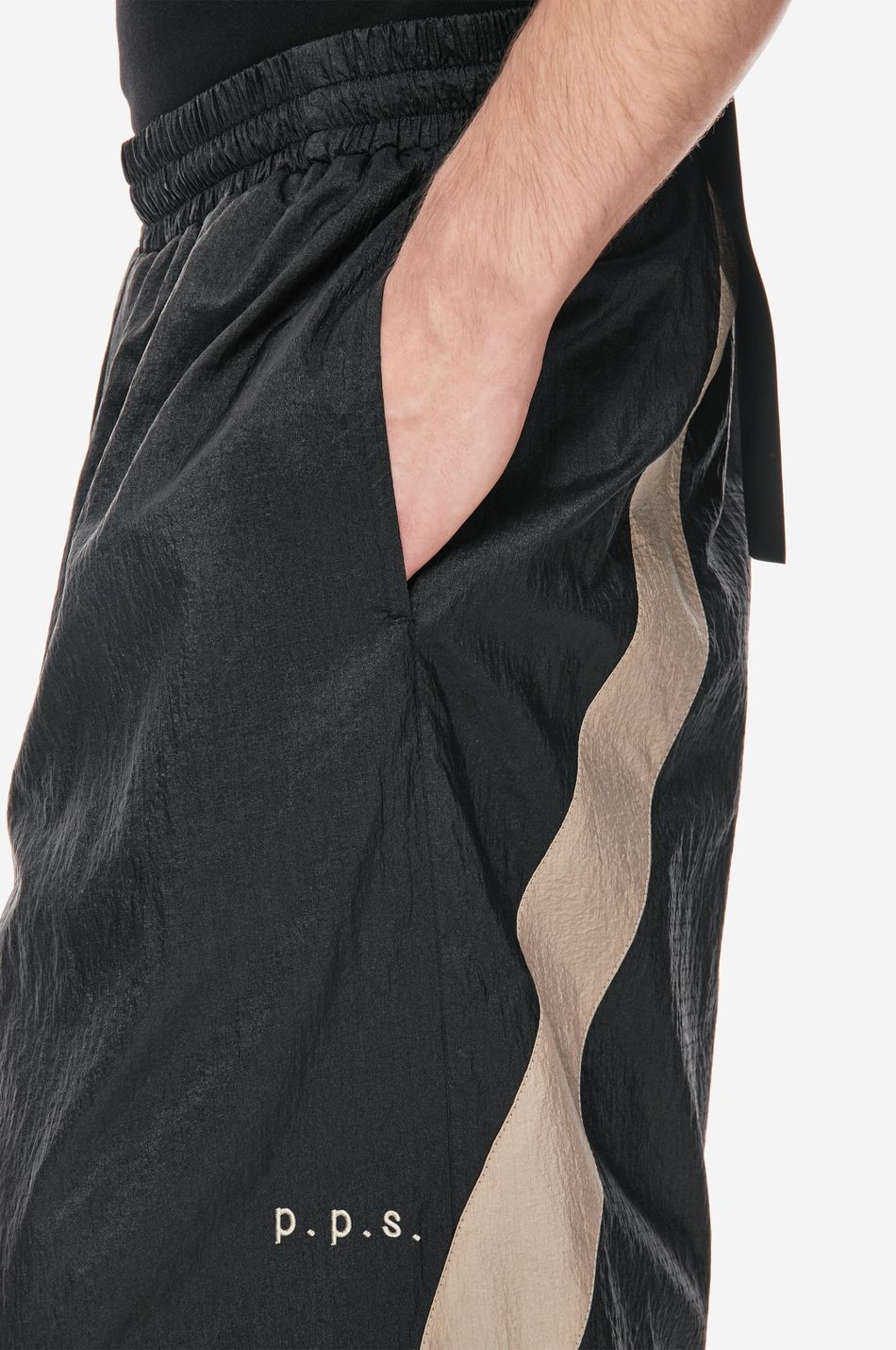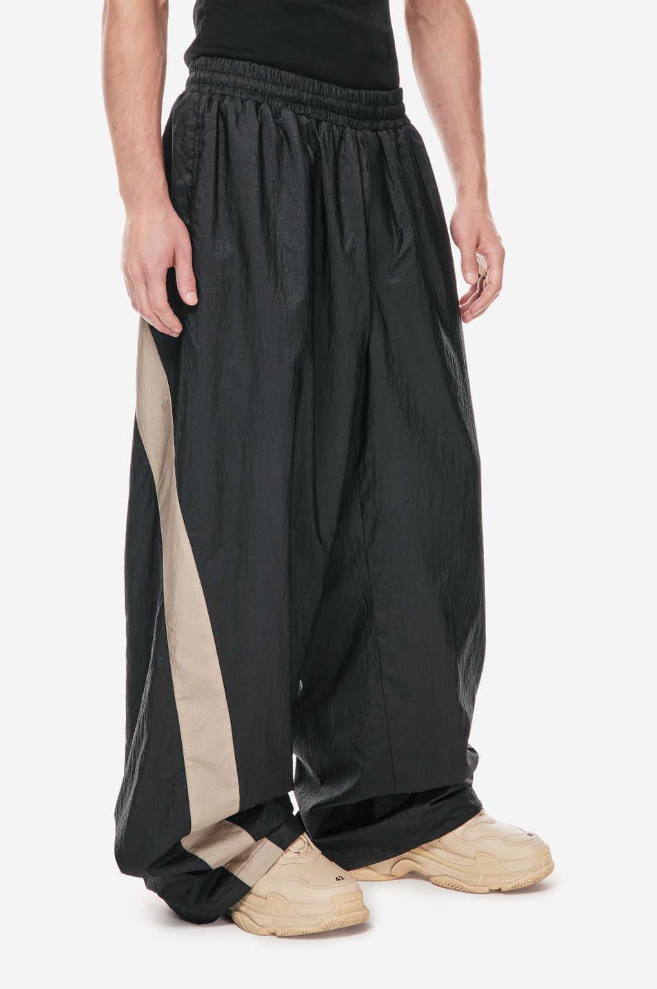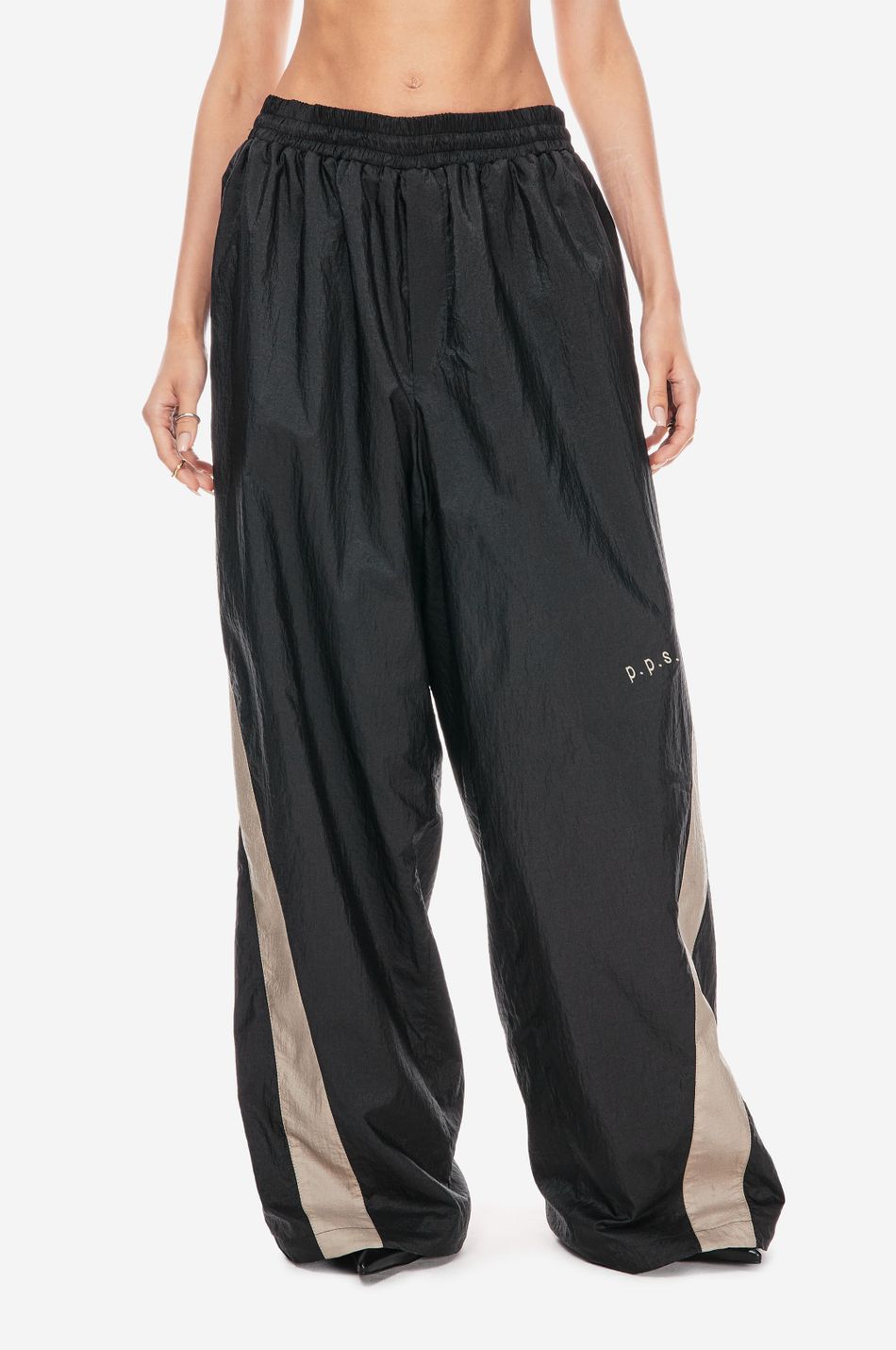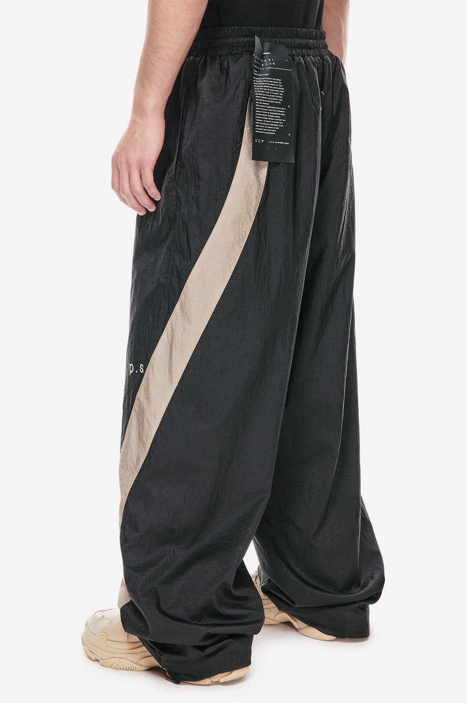брюки Loop Comfy: широкий крой, контрастные вставки, регулируемый низ. фирменные детали — вышитые скобки и патч-манифест. новый код в коллекции от post post scriptum.