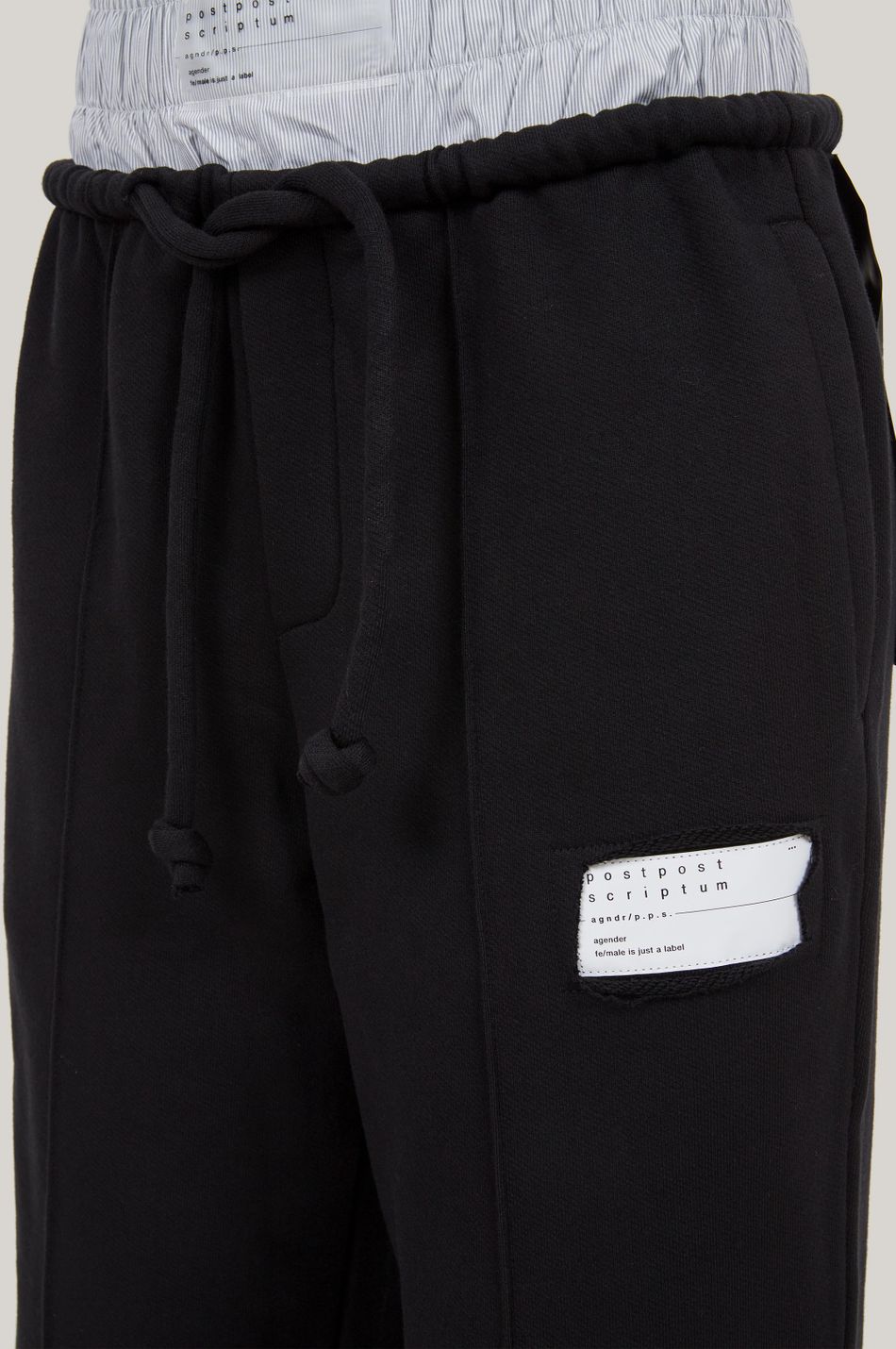 агендерные брюки, в основе которых лежит расслабленный крой джоггеров. когда ставишь стиль не выше комфорта. интимная бельевая деталь - наше признание в любви к творчеству сюрреалистов. никакой серьезности.