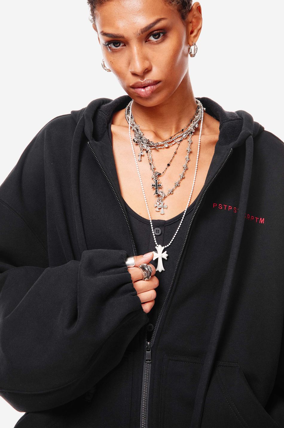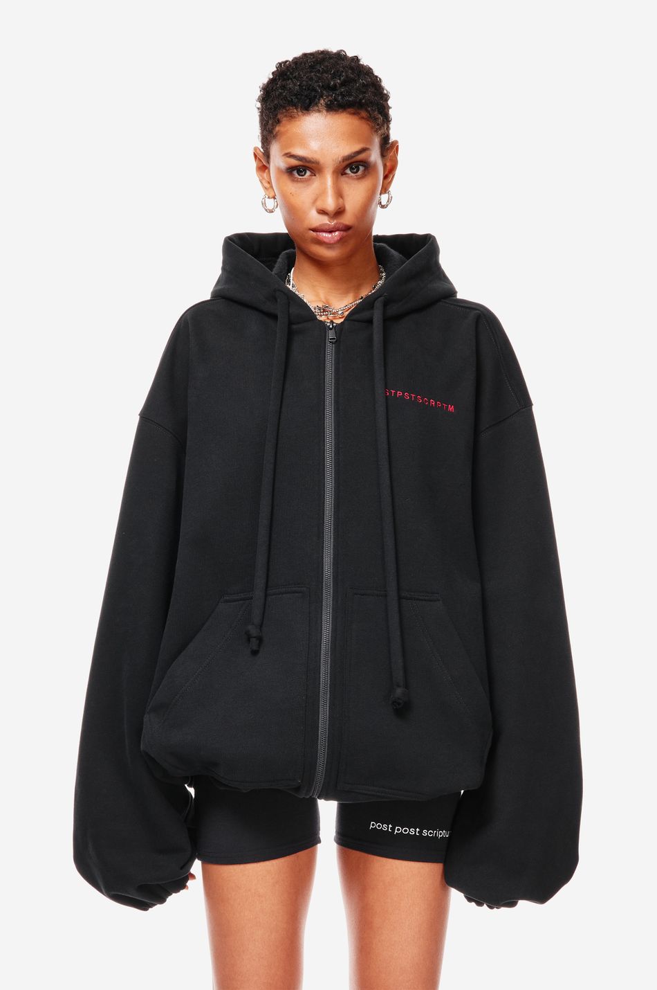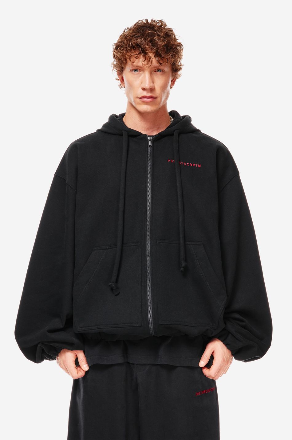 экстра объемный бомбер выполнен из мягкого хлопка, приятно прилегающего к телу. для изделия характерны длинные широкие рукава для более округлого силуэта, эластичная сборка по низу, регулируемый капюшон и контрастная вышивка PSTPSTSCRPTM на груди. модель застегивается на молнию в тон.