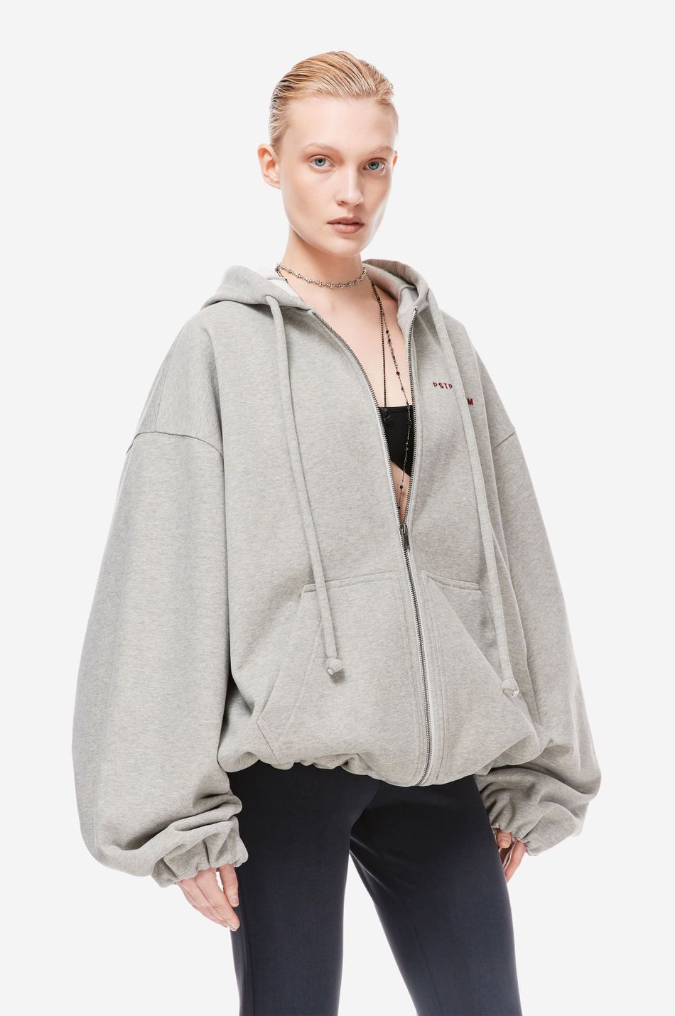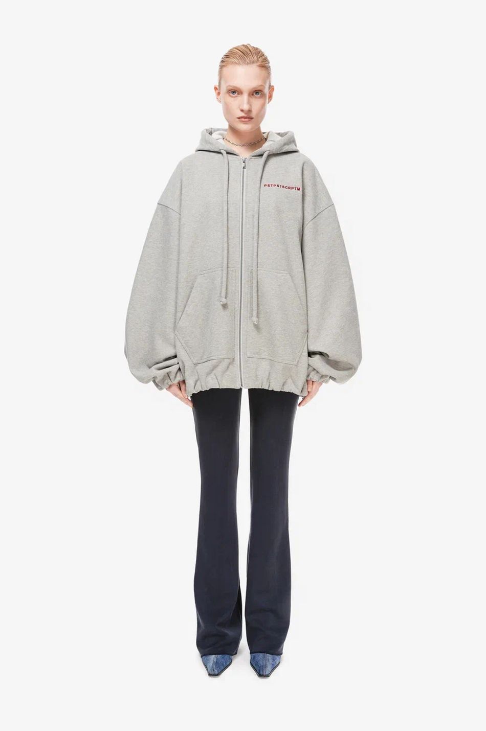 экстра объемный бомбер выполнен из мягкого хлопка, приятно прилегающего к телу. для изделия характерны длинные широкие рукава для более округлого силуэта, эластичная сборка по низу, регулируемый капюшон и контрастная вышивка PSTPSTSCRPTM на груди. модель застегивается на молнию в тон