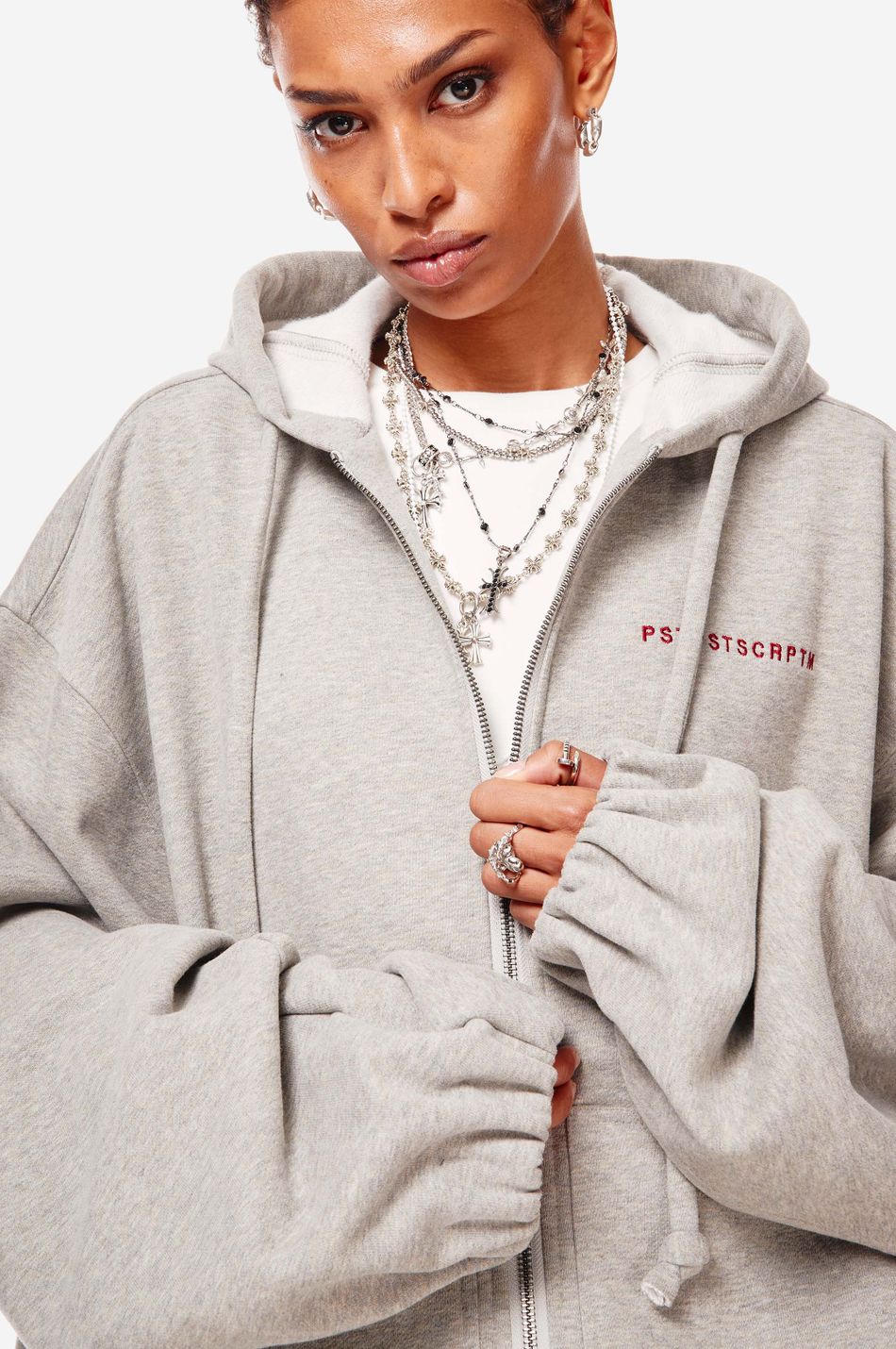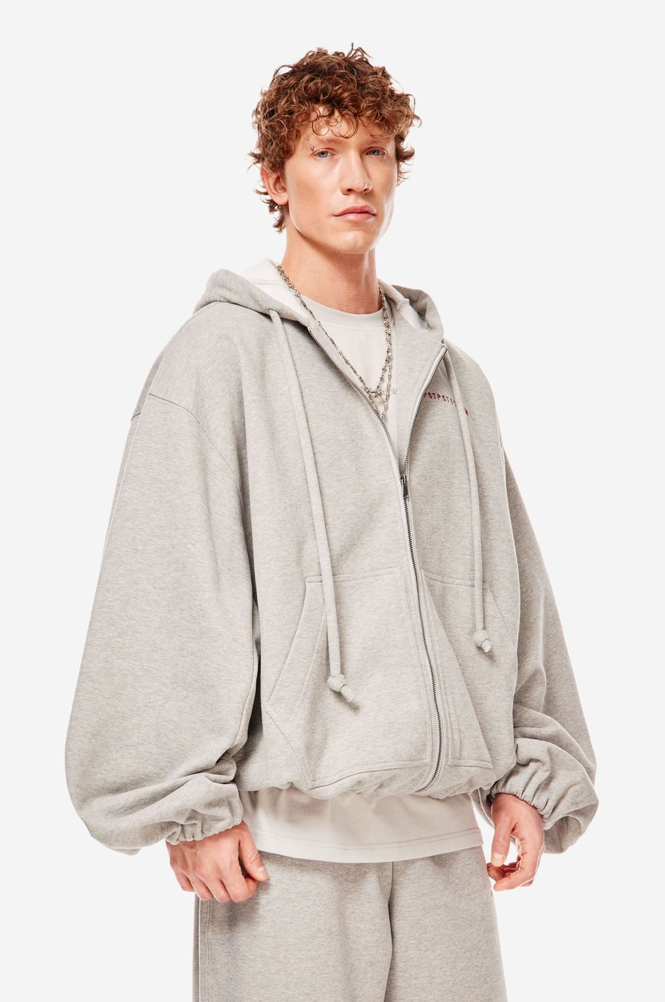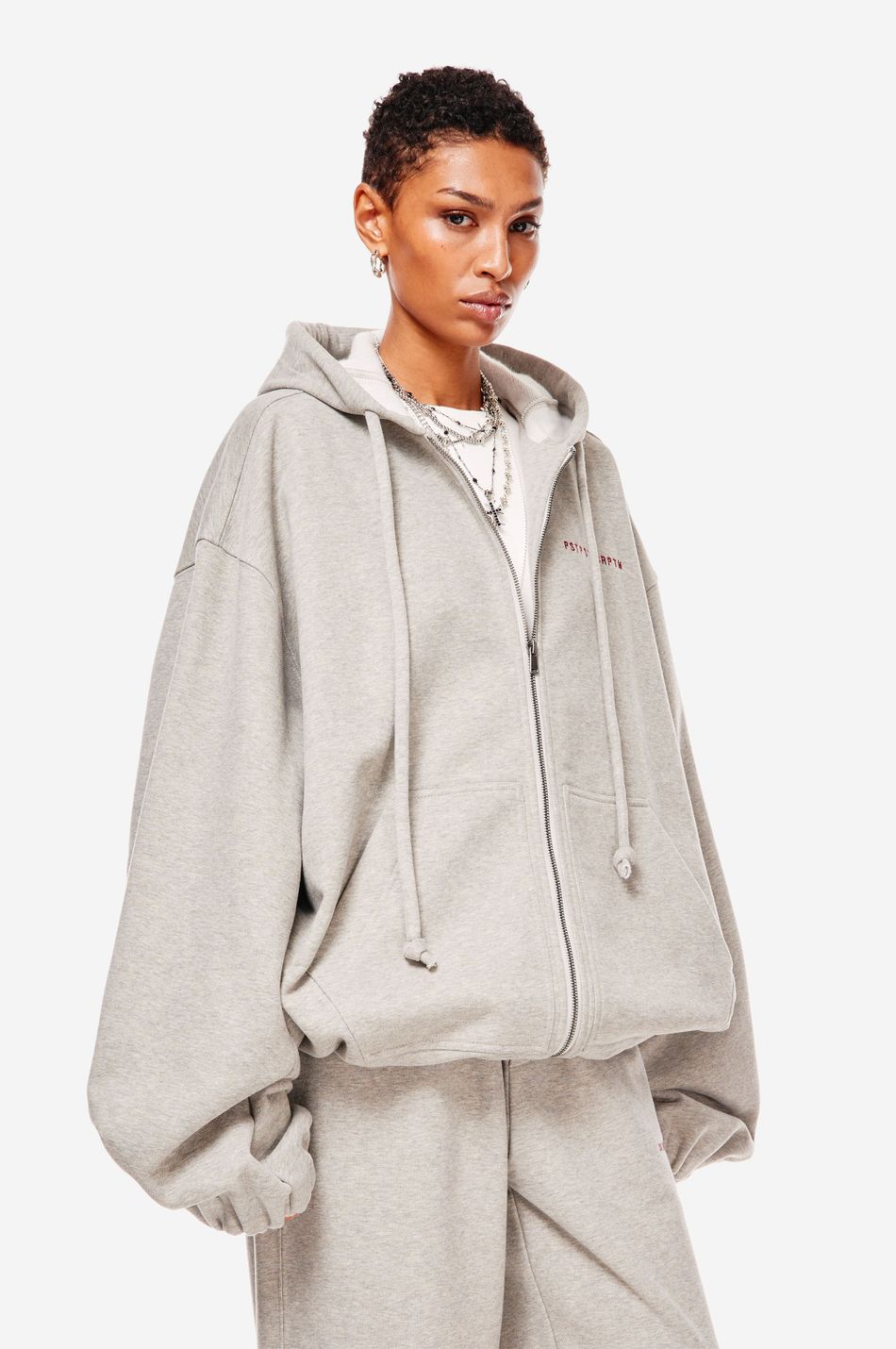 экстра объемный бомбер выполнен из мягкого хлопка, приятно прилегающего к телу. для изделия характерны длинные широкие рукава для более округлого силуэта, эластичная сборка по низу, регулируемый капюшон и контрастная вышивка PSTPSTSCRPTM на груди. модель застегивается на молнию в тон