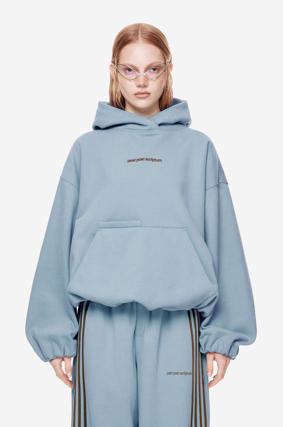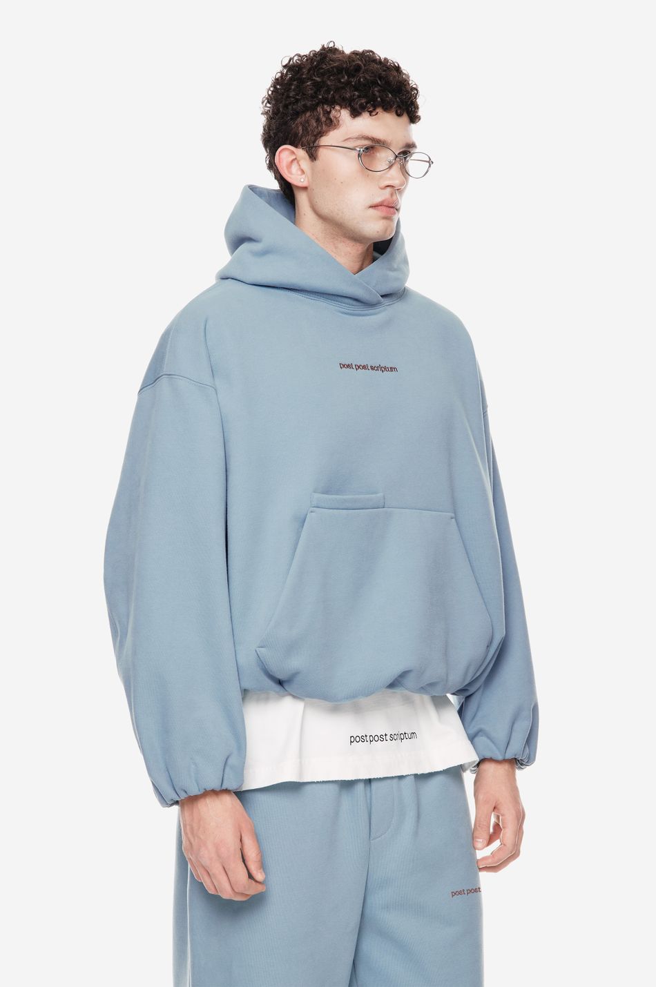 Худи выполнен из 100% хлопкового трикотажа плотностью 470 г со специальной винтажной стиркой, которая придает ткани глубину цвета и мягкость. Фирменный крой бренда подчеркивается объемным силуэтом, спущенными плечами, перекрывающимся вырезом плавно переходящим в массивный капюшон. Вышитый красный логотип “post post scriptum” спереди добавляет контрастный акцент. Просторный передний карман, эластичные манжеты и собранный на резинку подол обеспечивают комфортную посадку и стильный баланс между расслабленным и продуманным дизайном