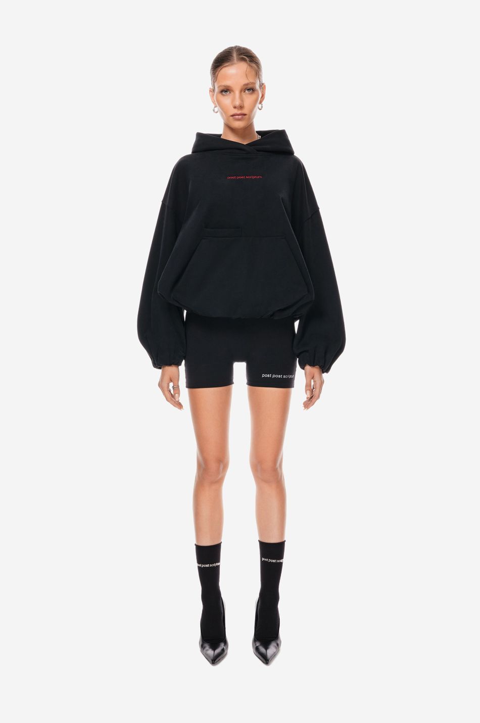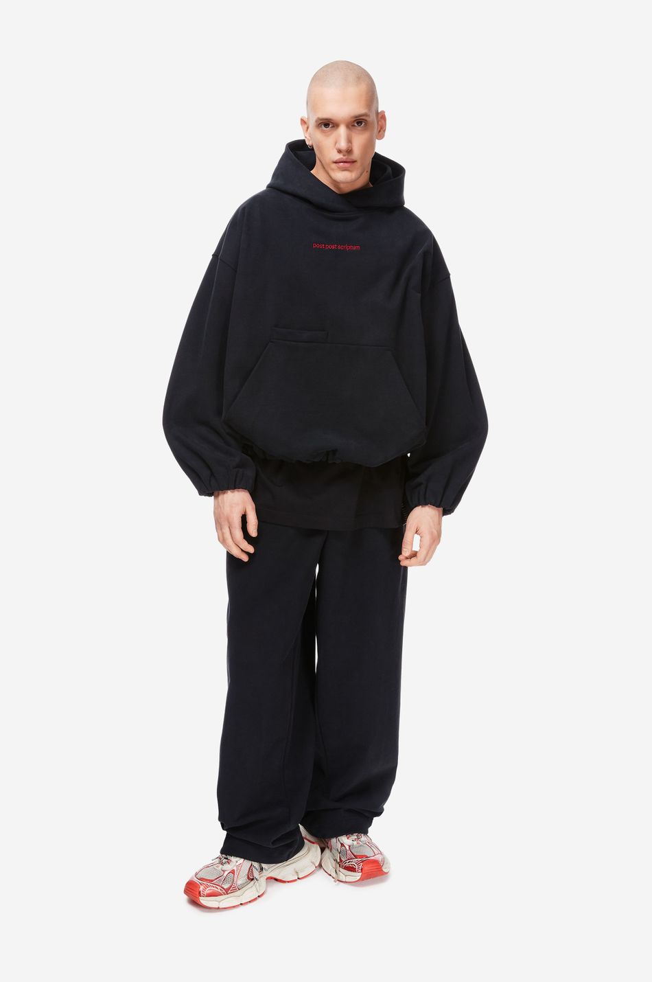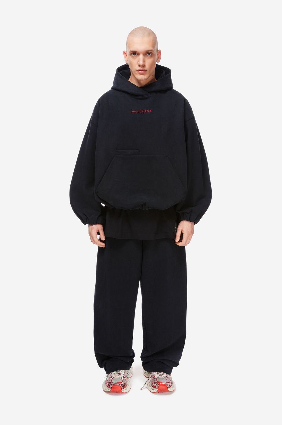 Худи выполнен из 100% хлопкового трикотажа плотностью 470 г со специальной винтажной стиркой, которая придает ткани глубину цвета и мягкость. Фирменный крой бренда подчеркивается объемным силуэтом, спущенными плечами, перекрывающимся вырезом плавно переходящим в массивный капюшон. Вышитый красный логотип “post post scriptum” спереди добавляет контрастный акцент. Просторный передний карман, эластичные манжеты и собранный на резинку подол обеспечивают комфортную посадку и стильный баланс между расслабленным и продуманным дизайном