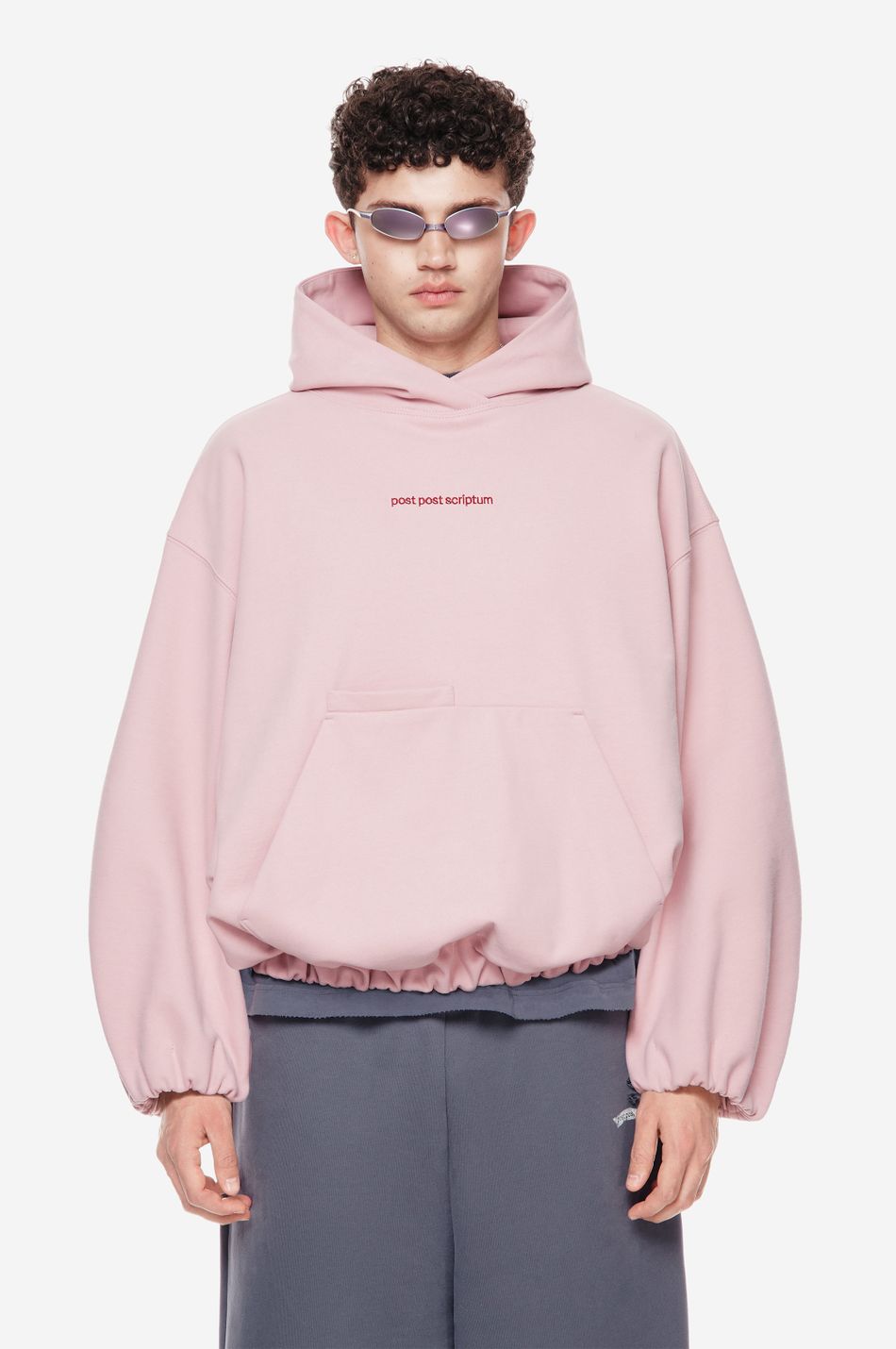 Худи выполнен из 100% хлопкового трикотажа плотностью 470 г со специальной винтажной стиркой, которая придает ткани глубину цвета и мягкость. Фирменный крой бренда подчеркивается объемным силуэтом, спущенными плечами, перекрывающимся вырезом плавно переходящим в массивный капюшон. Вышитый красный логотип “post post scriptum” спереди добавляет контрастный акцент. Просторный передний карман, эластичные манжеты и собранный на резинку подол обеспечивают комфортную посадку и стильный баланс между расслабленным и продуманным дизайном