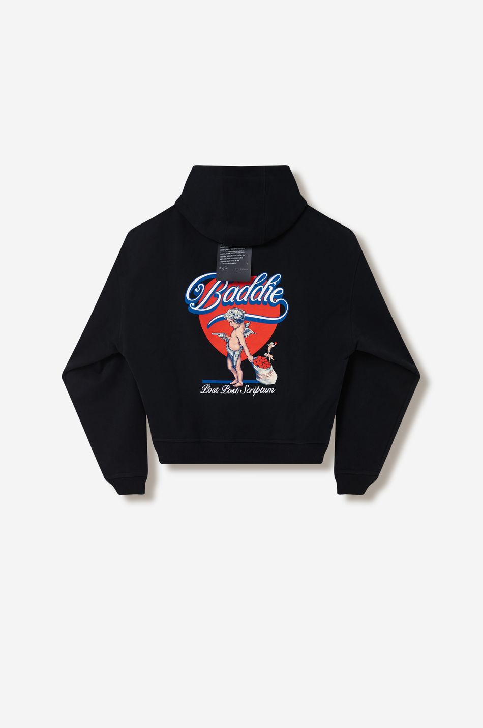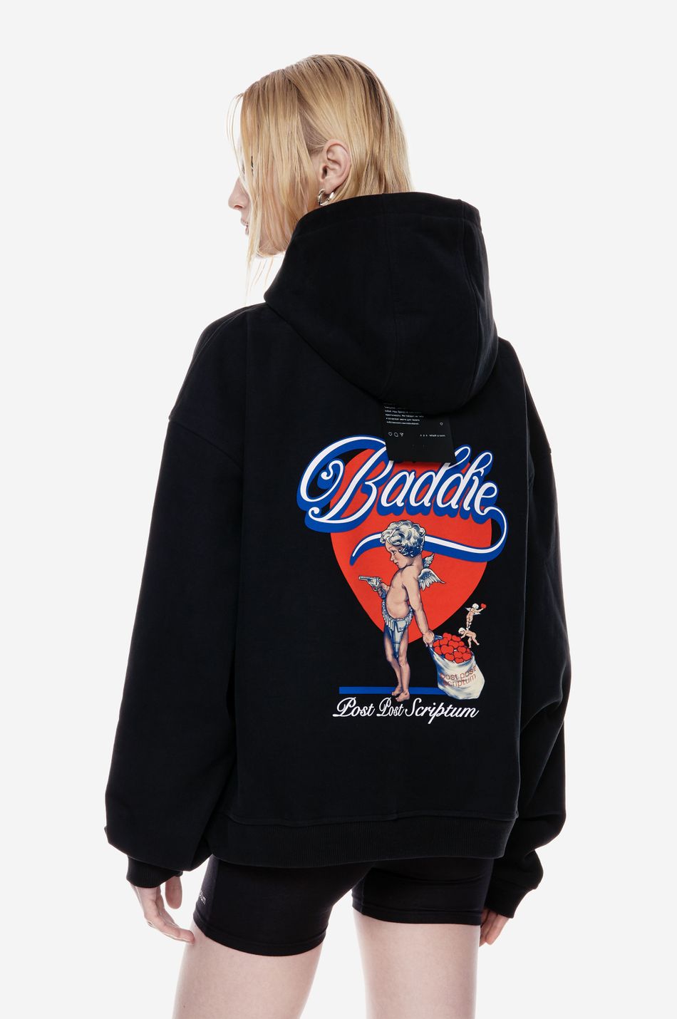 худи из плотного 100% хлопка из дропа «Valentine’s» в черном цвете с персонажем «Baddie» выполнено в эстетике Y2K и поп-культуры 90-х.