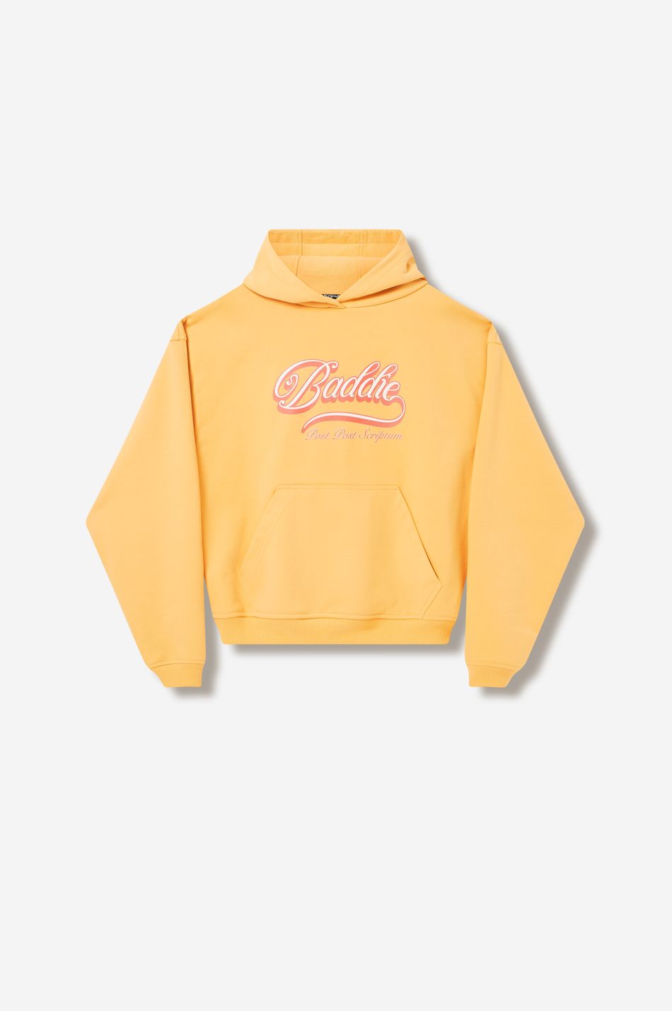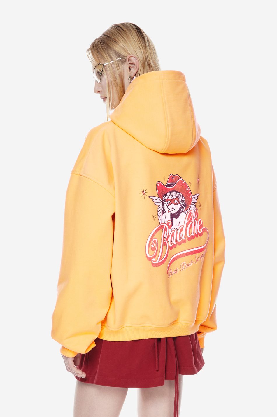 худи из Valentine’s drop в жёлтом цвете с крылатым персонажем Baddie выполнено в эстетике Y2K и поп-культуры 90-х.