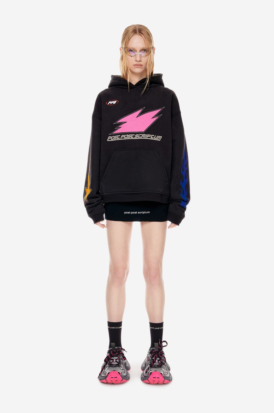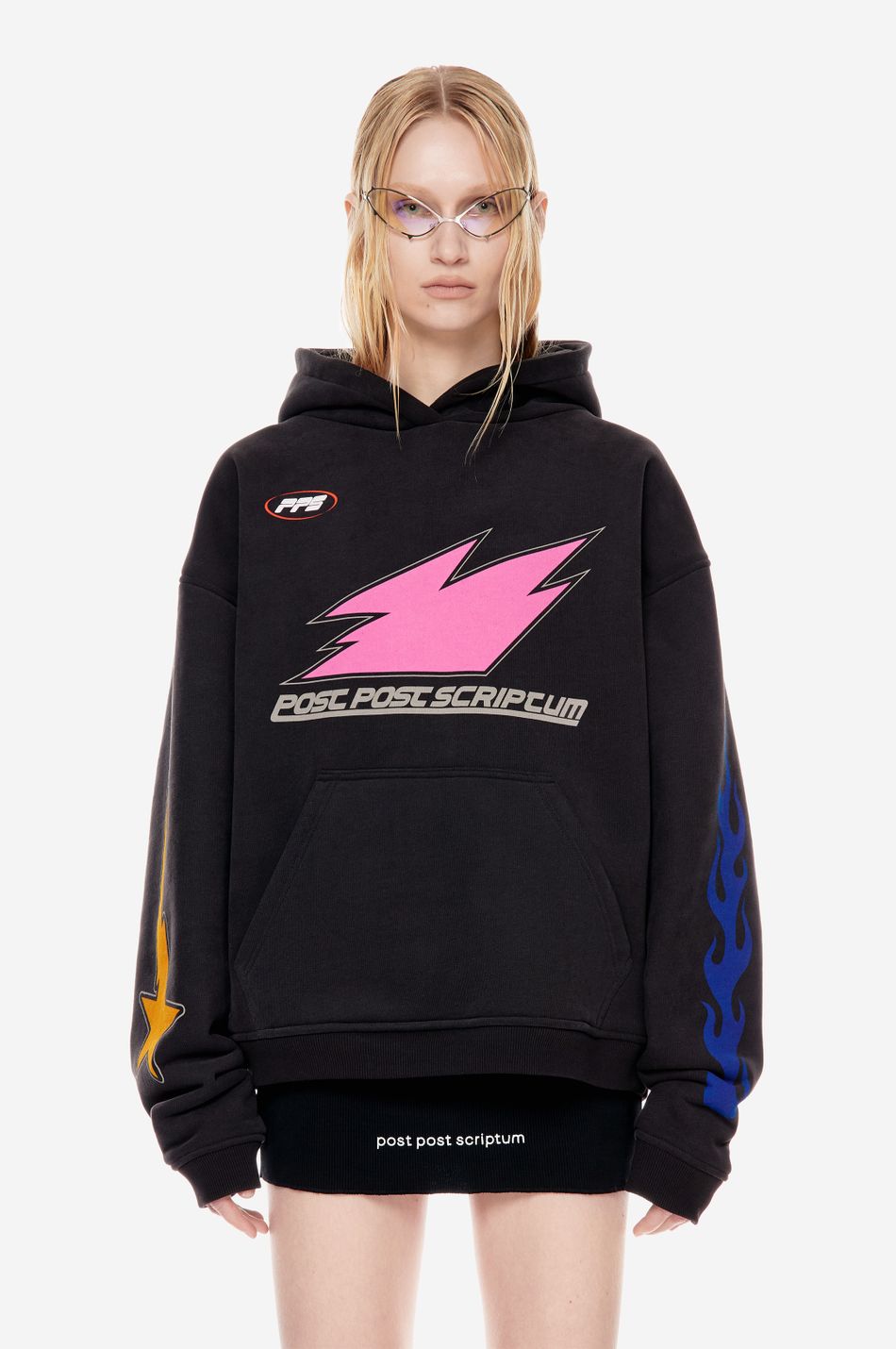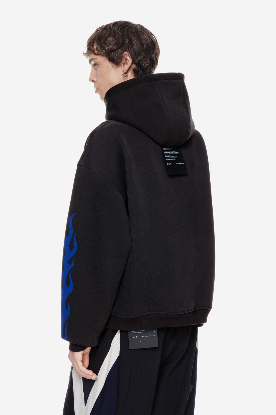 Центральный принт дополнен принтами на рукавах и формирует образ в эстетике графического streetwear.