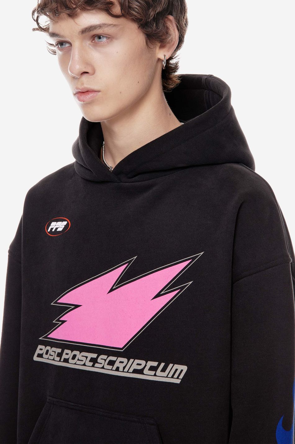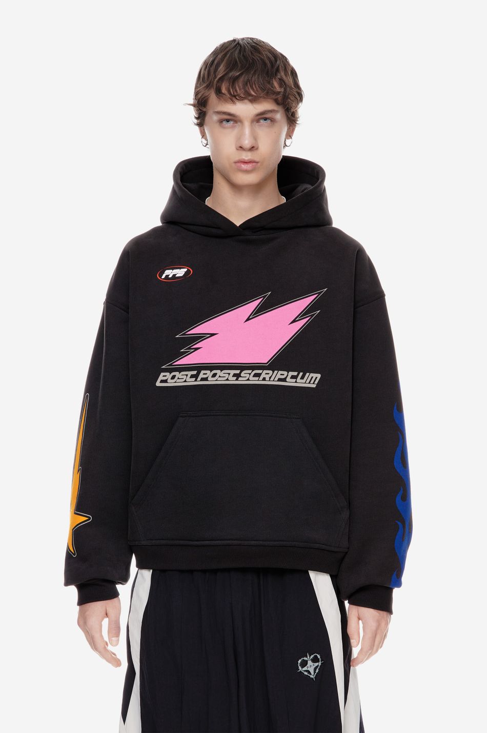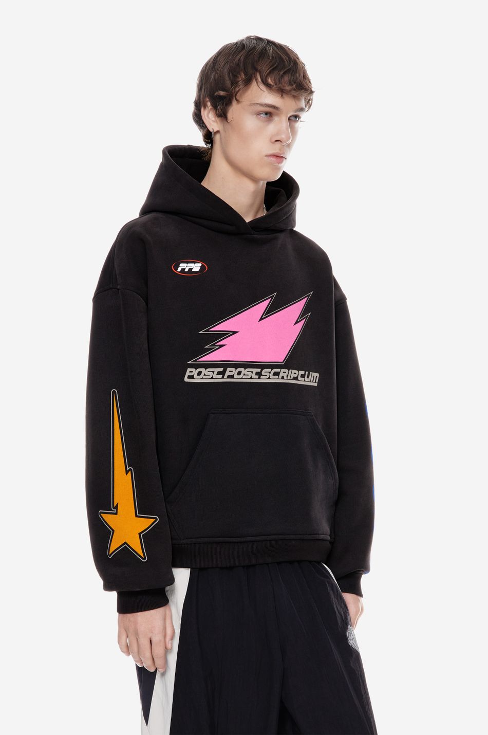 Центральный принт дополнен принтами на рукавах и формирует образ в эстетике графического streetwear.