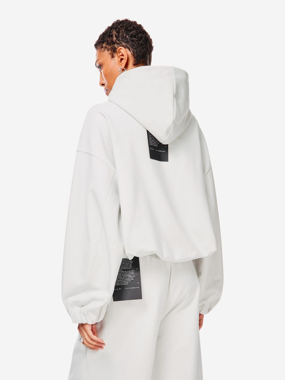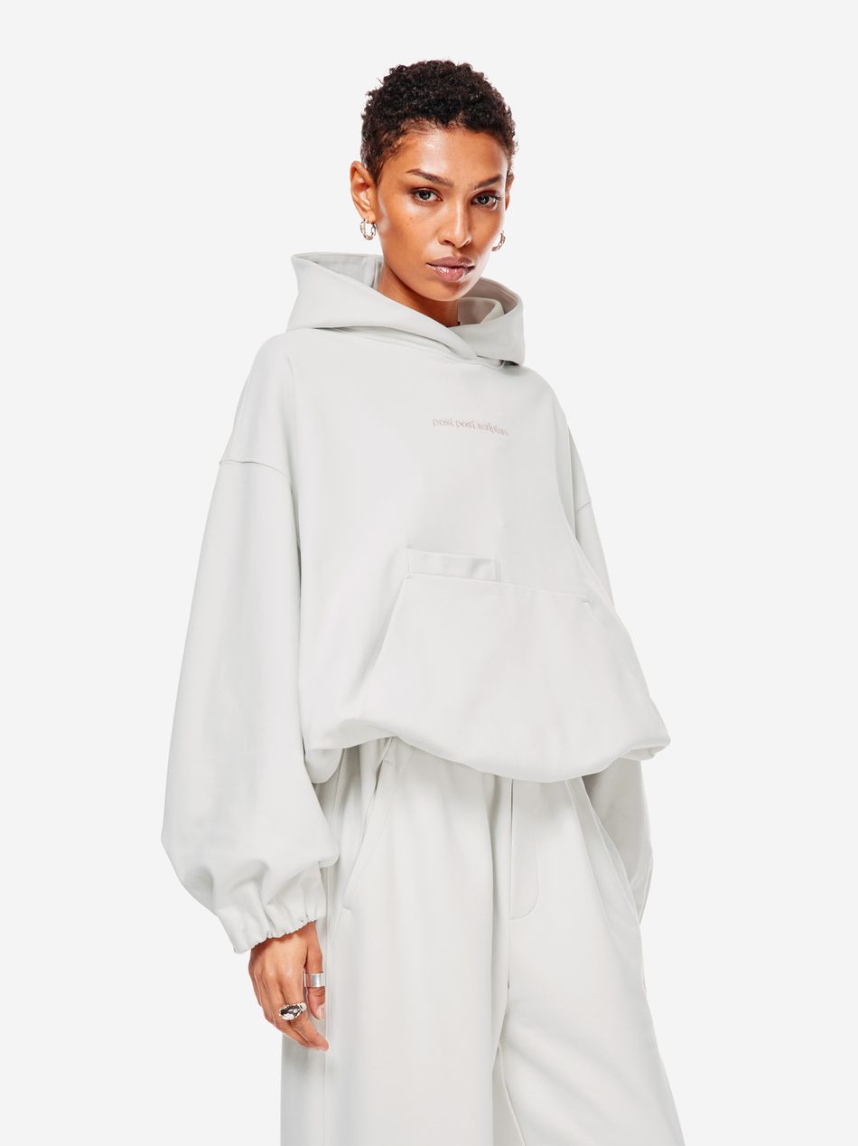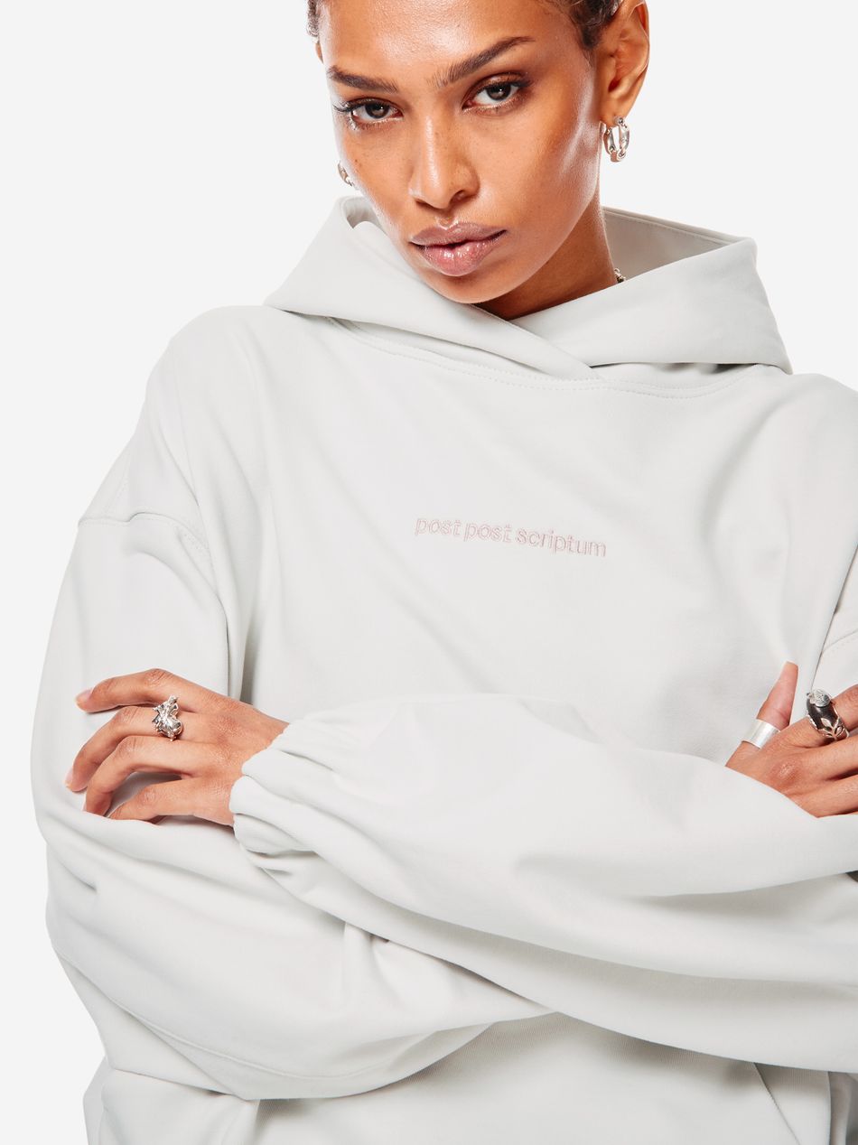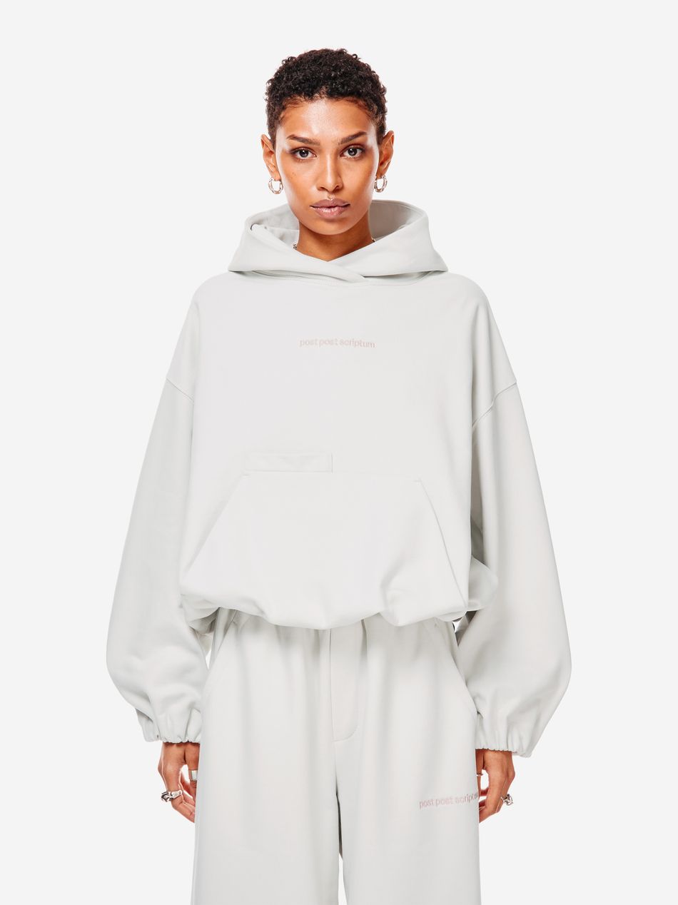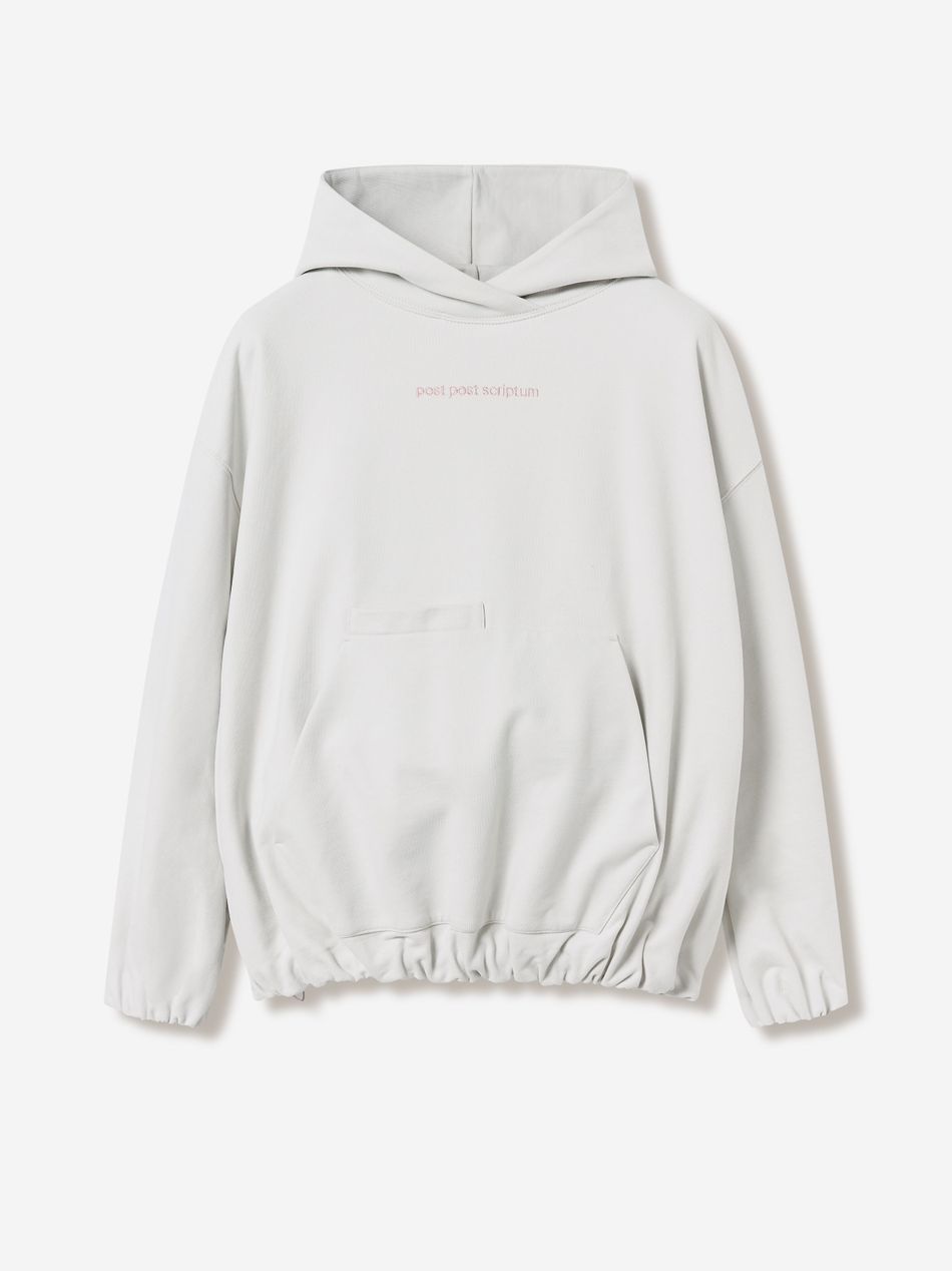 Худи выполнен из 100% хлопкового трикотажа плотностью 470 г со специальной винтажной стиркой, которая придает ткани глубину цвета и мягкость. Фирменный крой бренда подчеркивается объемным силуэтом, спущенными плечами, перекрывающимся вырезом плавно переходящим в массивный капюшон. Вышитый красный логотип “post post scriptum” спереди добавляет контрастный акцент. Просторный передний карман, эластичные манжеты и собранный на резинку подол обеспечивают комфортную посадку и стильный баланс между расслабленным и продуманным дизайном