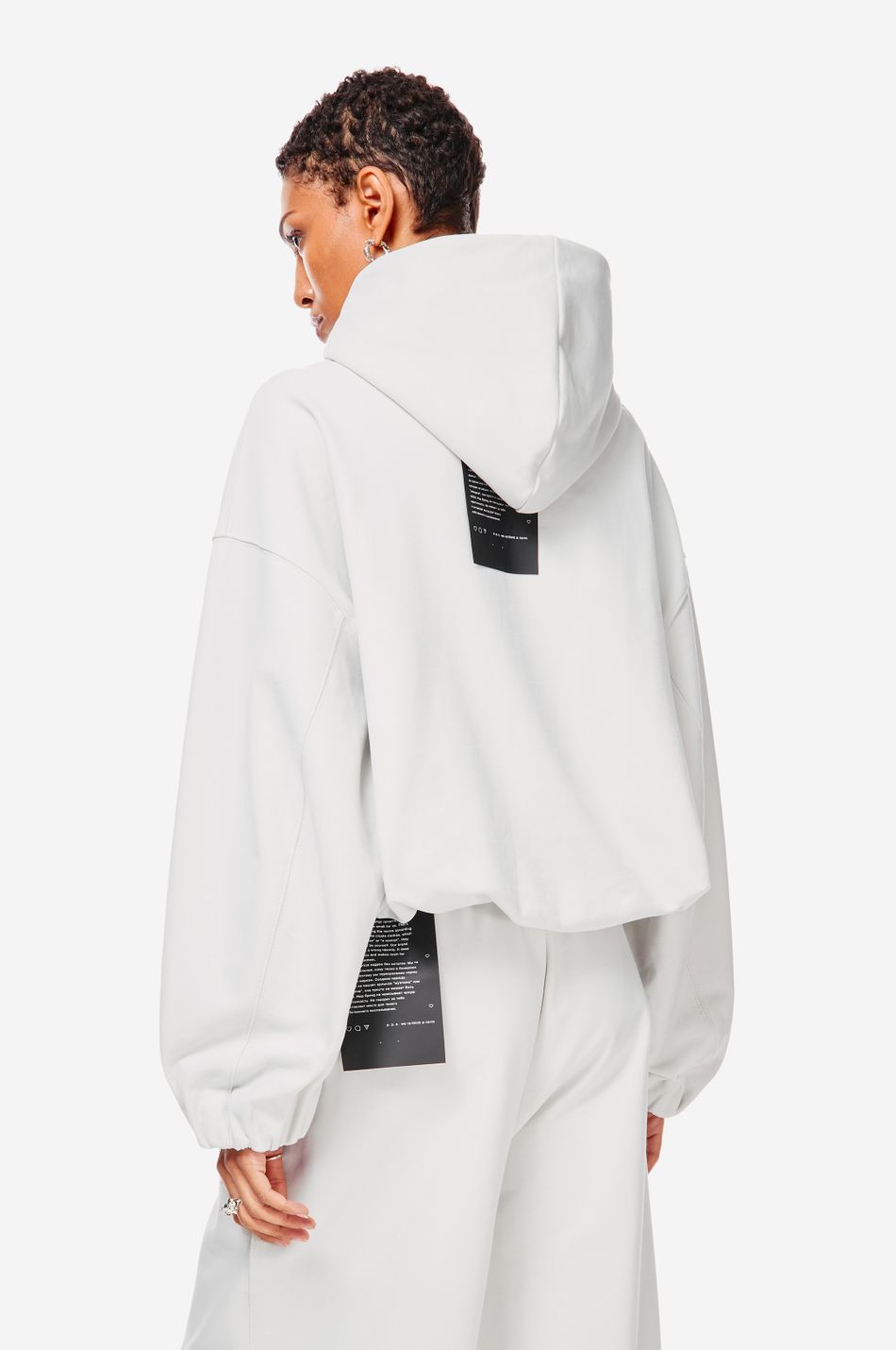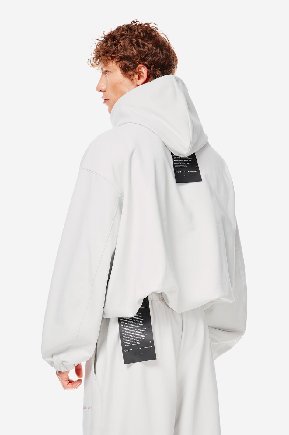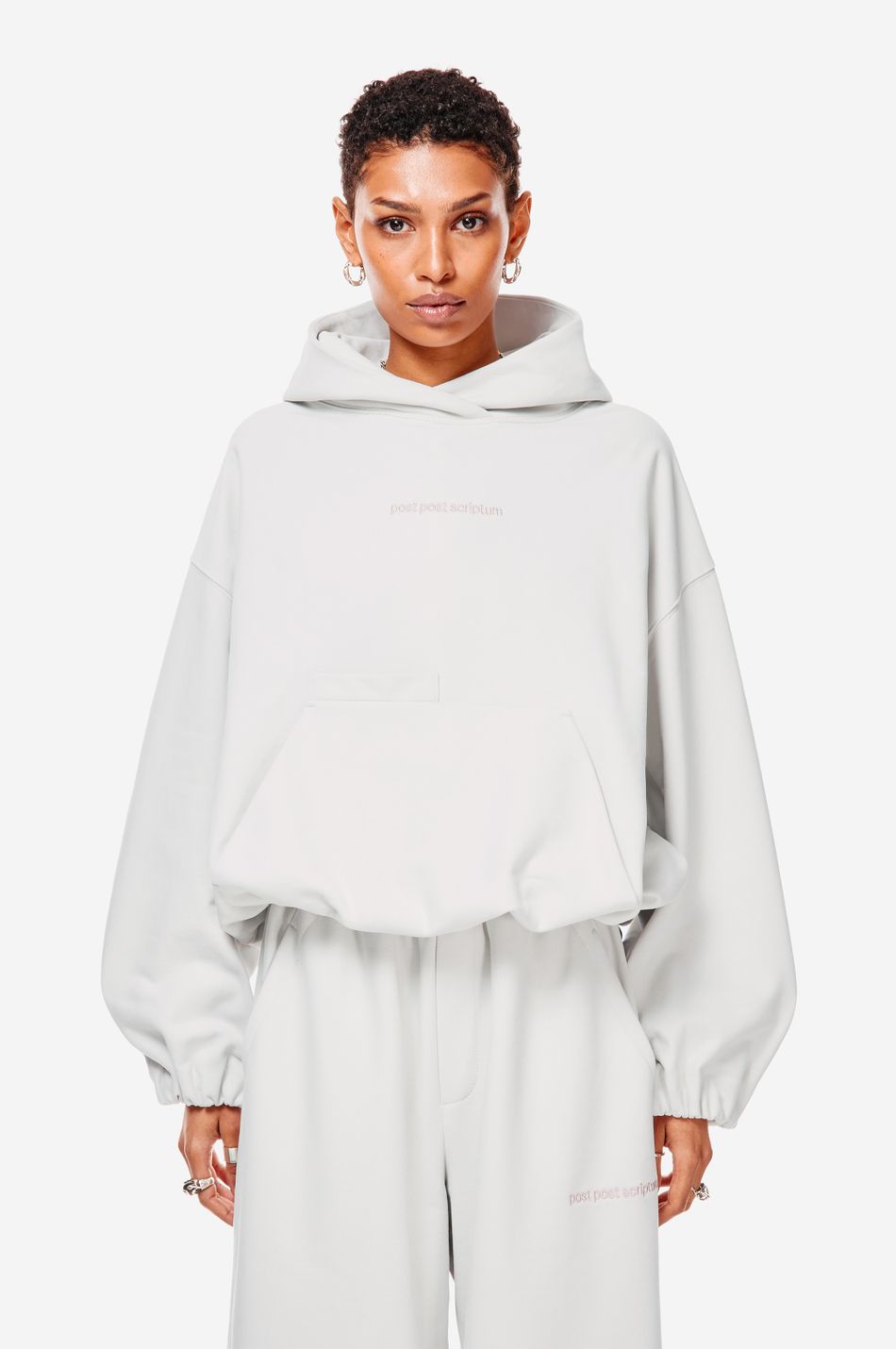 Худи выполнен из 100% хлопкового трикотажа плотностью 470 г со специальной винтажной стиркой, которая придает ткани глубину цвета и мягкость. Фирменный крой бренда подчеркивается объемным силуэтом, спущенными плечами, перекрывающимся вырезом плавно переходящим в массивный капюшон. Вышитый красный логотип “post post scriptum” спереди добавляет контрастный акцент. Просторный передний карман, эластичные манжеты и собранный на резинку подол обеспечивают комфортную посадку и стильный баланс между расслабленным и продуманным дизайном