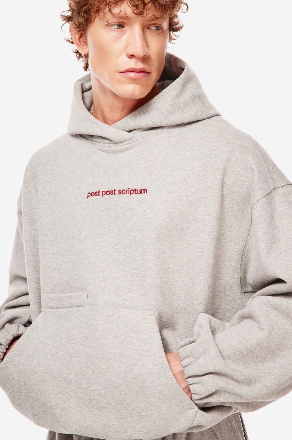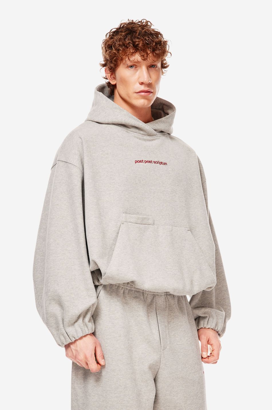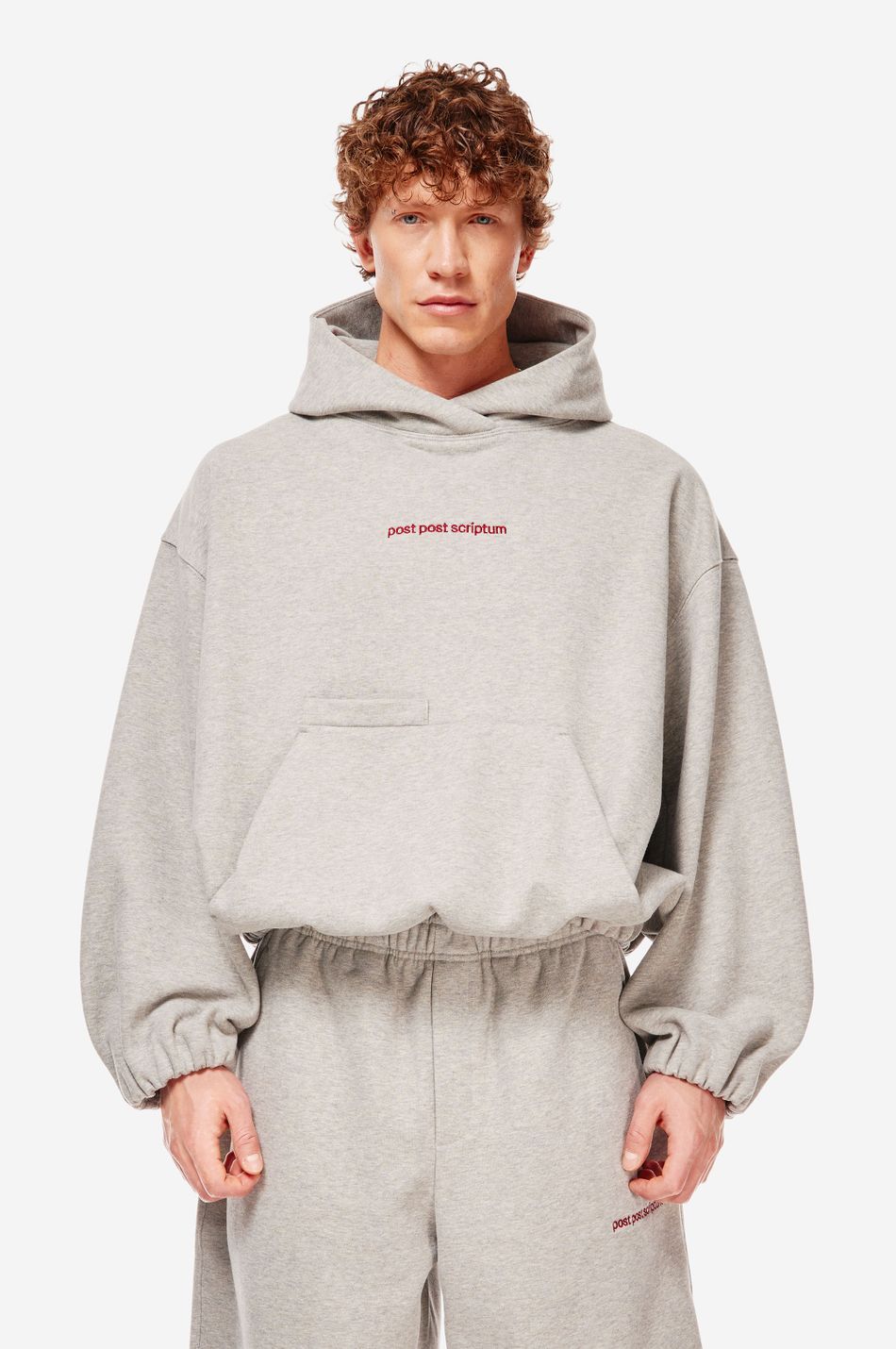 Худи выполнен из 100% хлопкового трикотажа плотностью 470 г со специальной винтажной стиркой, которая придает ткани глубину цвета и мягкость. Фирменный крой бренда подчеркивается объемным силуэтом, спущенными плечами, перекрывающимся вырезом плавно переходящим в массивный капюшон. Вышитый красный логотип “post post scriptum” спереди добавляет контрастный акцент. Просторный передний карман, эластичные манжеты и собранный на резинку подол обеспечивают комфортную посадку и стильный баланс между расслабленным и продуманным дизайном