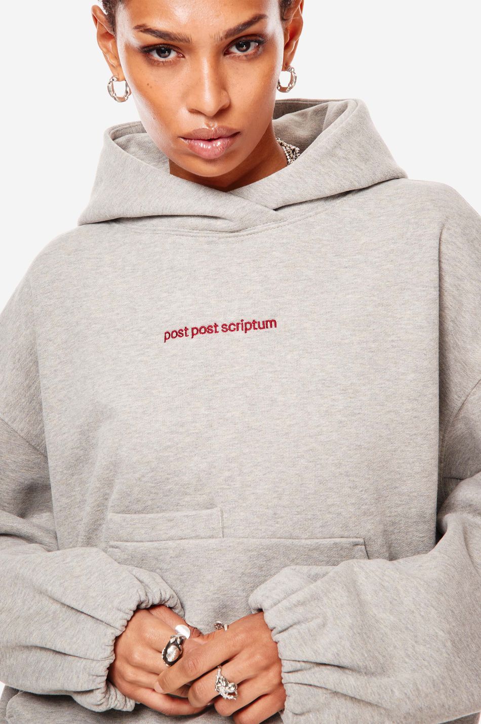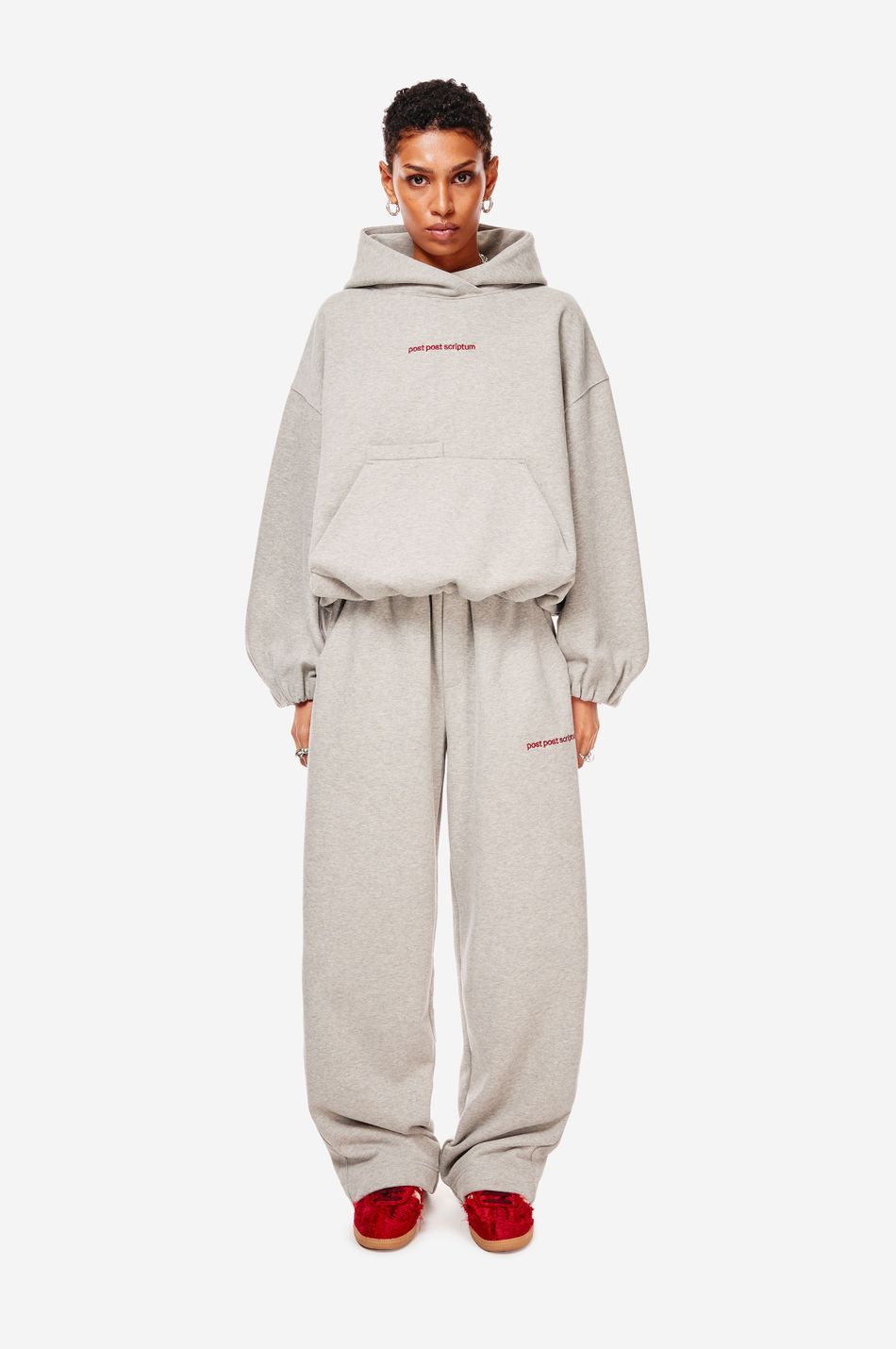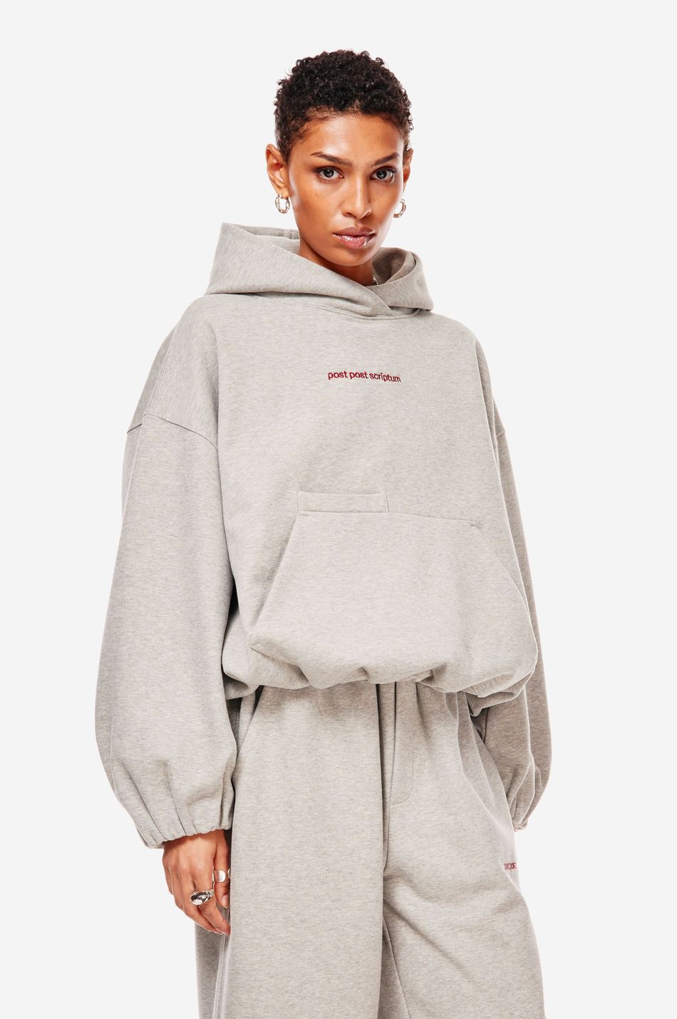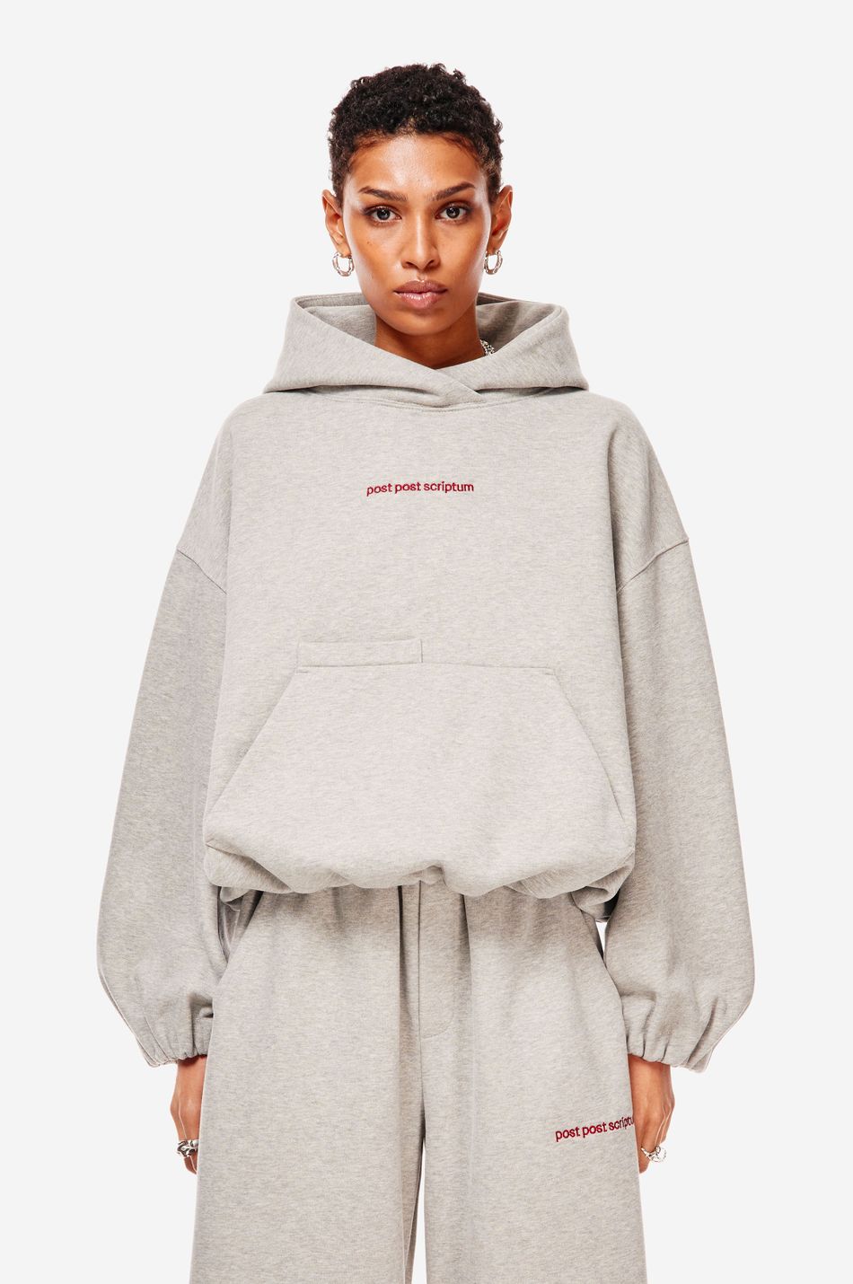 Худи выполнен из 100% хлопкового трикотажа плотностью 470 г со специальной винтажной стиркой, которая придает ткани глубину цвета и мягкость. Фирменный крой бренда подчеркивается объемным силуэтом, спущенными плечами, перекрывающимся вырезом плавно переходящим в массивный капюшон. Вышитый красный логотип “post post scriptum” спереди добавляет контрастный акцент. Просторный передний карман, эластичные манжеты и собранный на резинку подол обеспечивают комфортную посадку и стильный баланс между расслабленным и продуманным дизайном