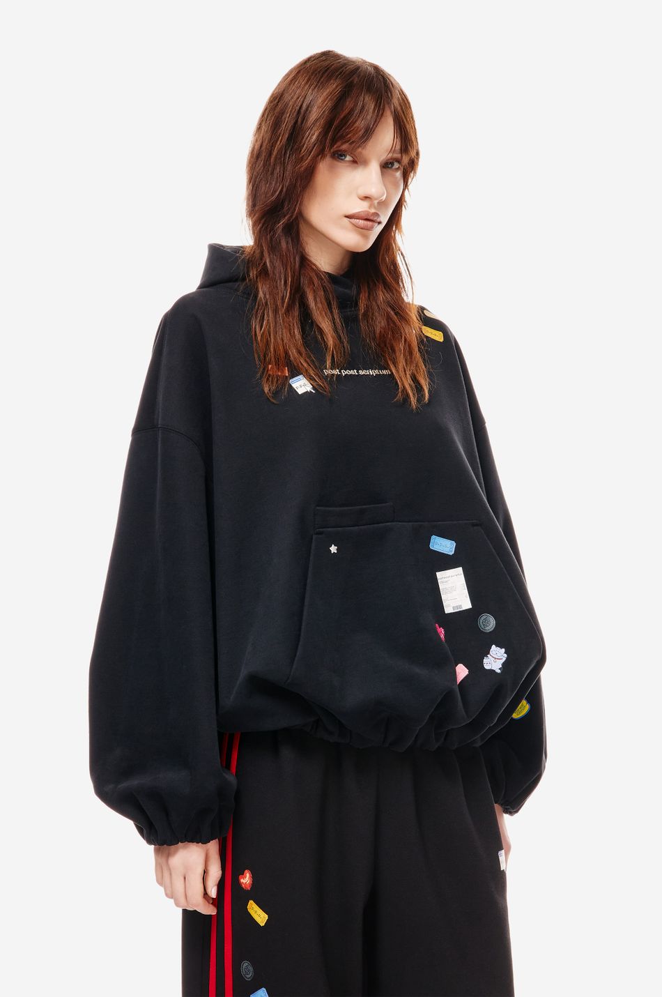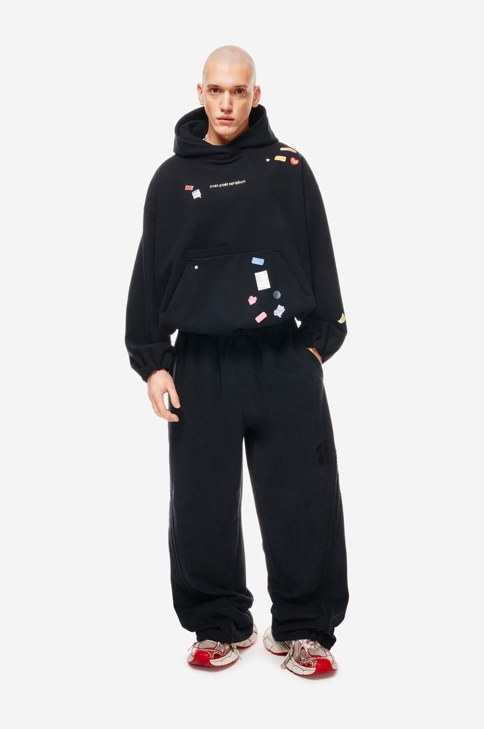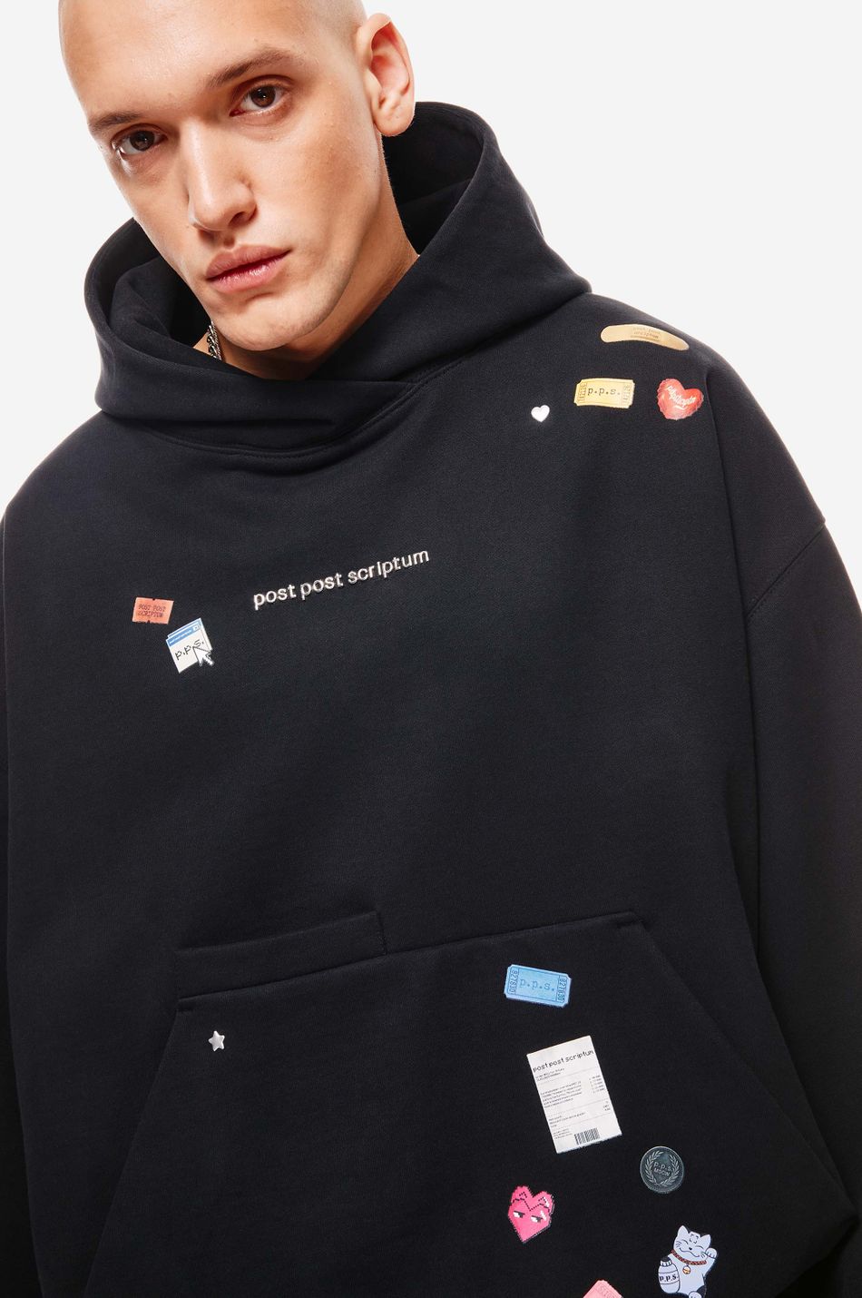 Худи выполнен из 100% хлопкового трикотажа плотностью 470 г со специальной винтажной стиркой, которая придает ткани глубину цвета и мягкость. Фирменный крой бренда подчеркивается объемным силуэтом, спущенными плечами, перекрывающимся вырезом плавно переходящим в массивный капюшон. Вышитый красный логотип “post post scriptum” спереди добавляет контрастный акцент. Просторный передний карман, эластичные манжеты и собранный на резинку подол обеспечивают комфортную посадку и стильный баланс между расслабленным и продуманным дизайном