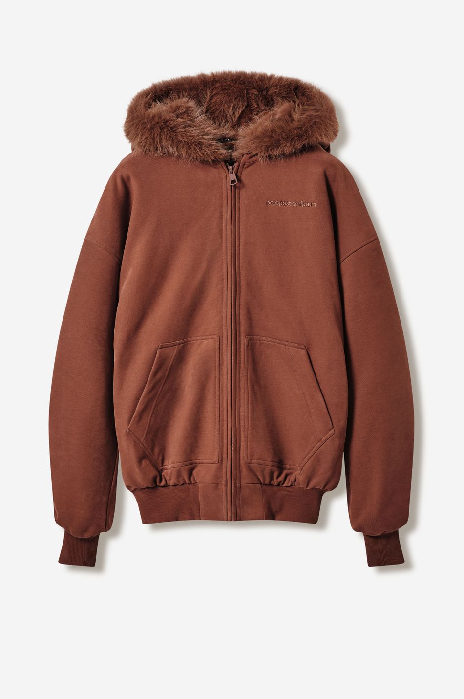объёмный бомбер фирменного оверсайз кроя с отделкой капюшона искусственным мехом в тон. функциональная молния, карманы-кенгуру и плотные трикотажные манжеты делают модель удобной для повседневного ношения.