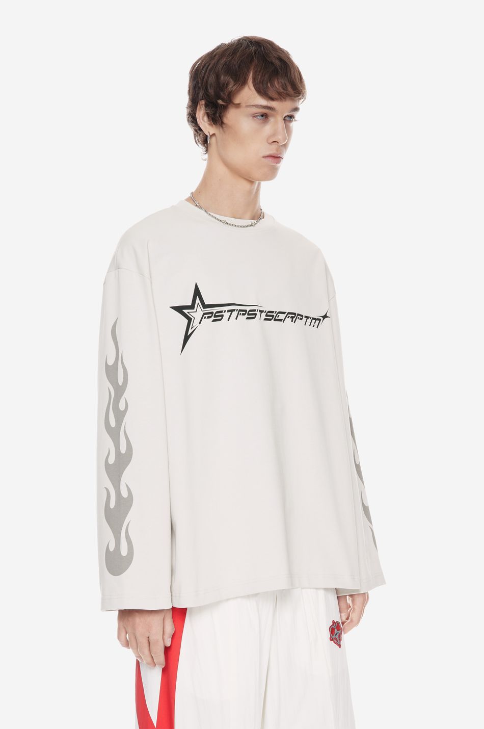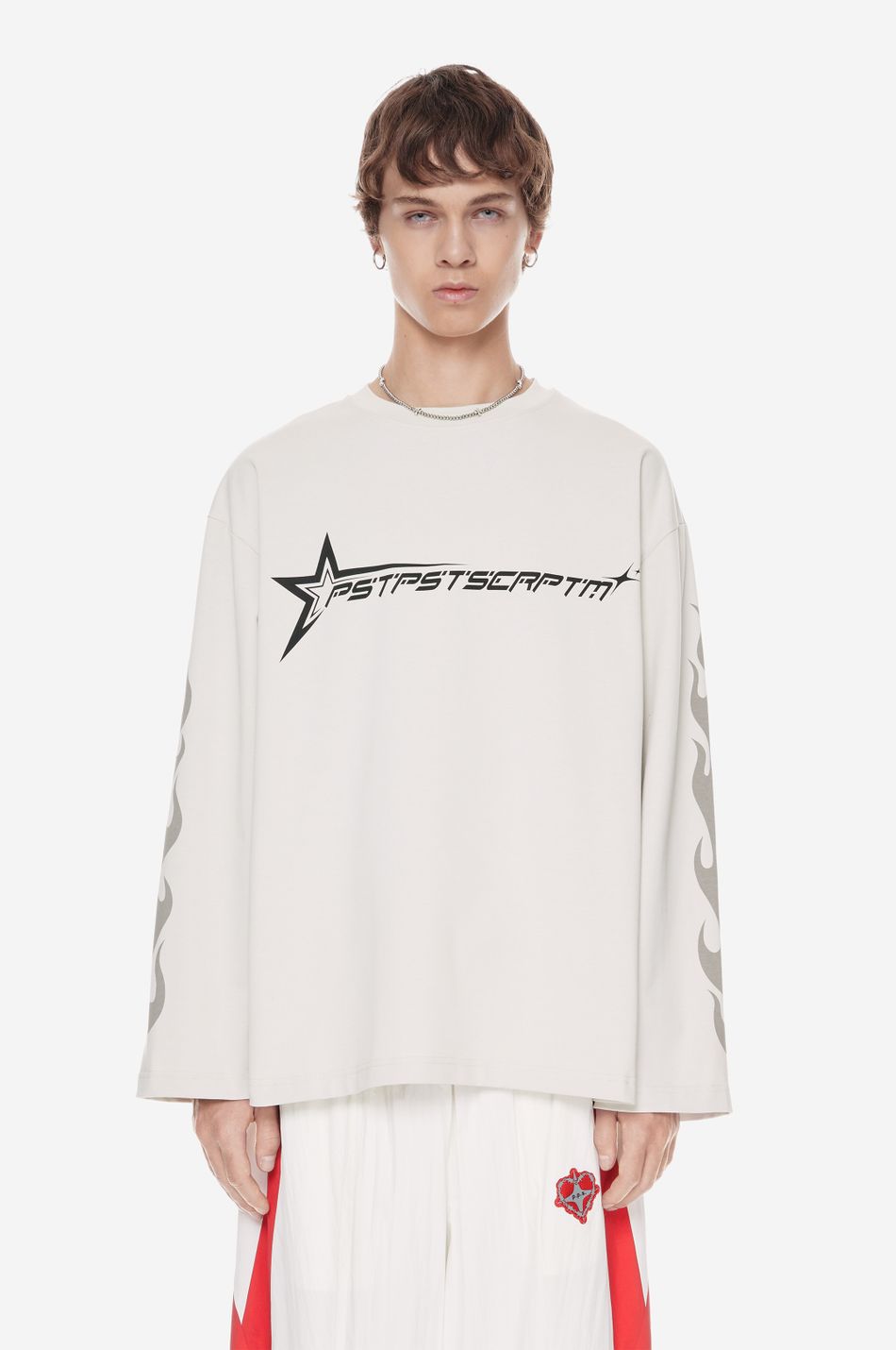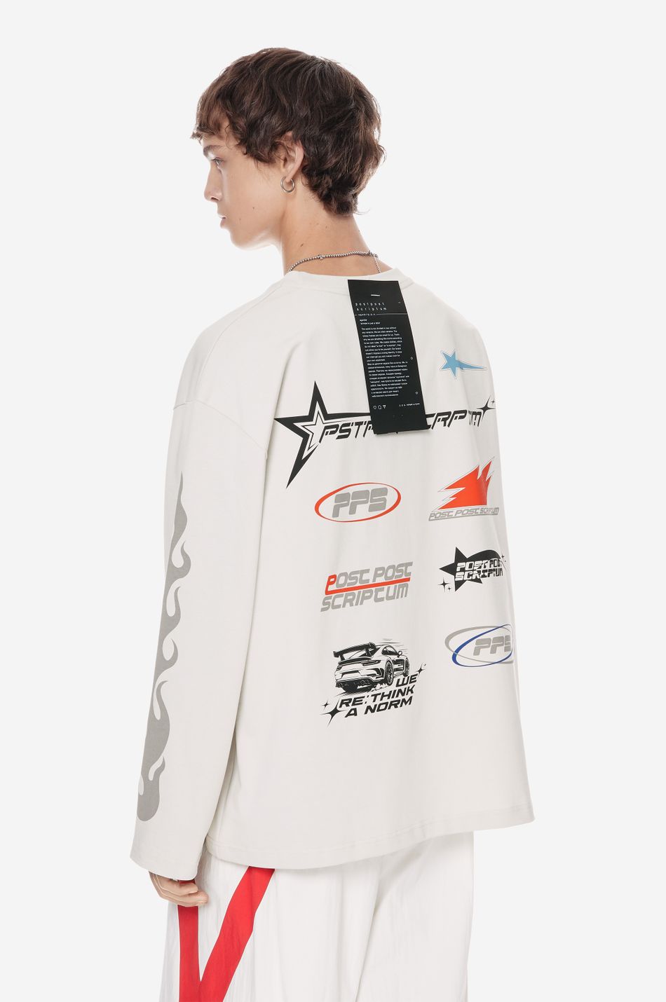 Лонгслив образ гоночной графики и символов скорости. Контрастные принты формируют динамичную композицию, вдохновлённую культурой автоспорта.