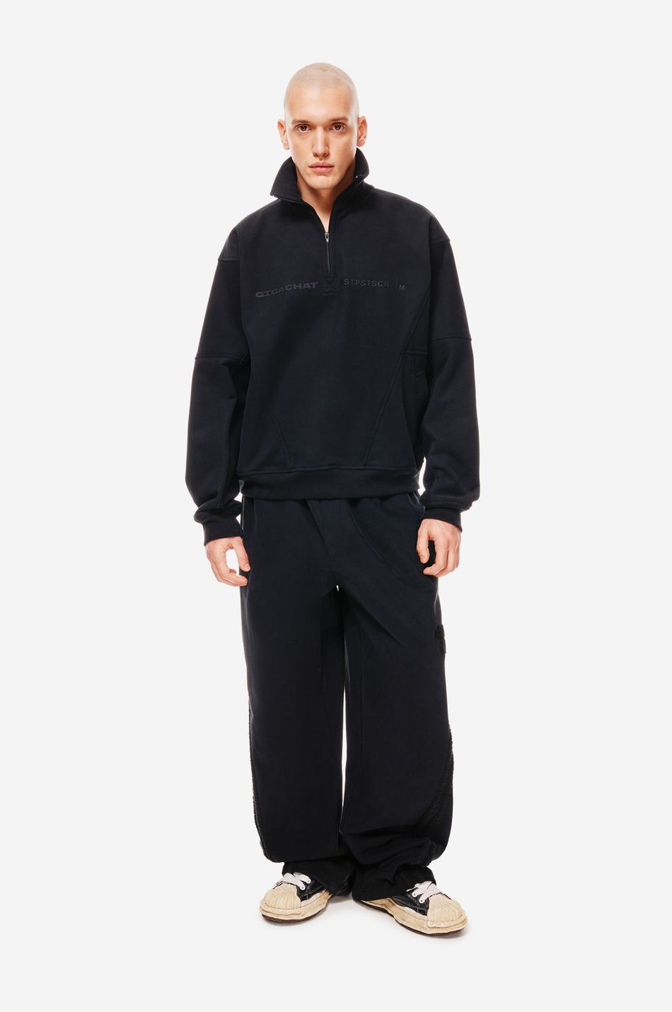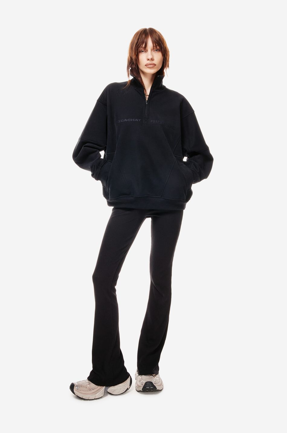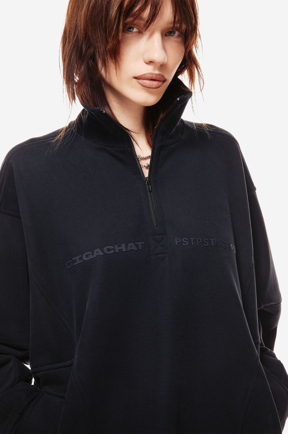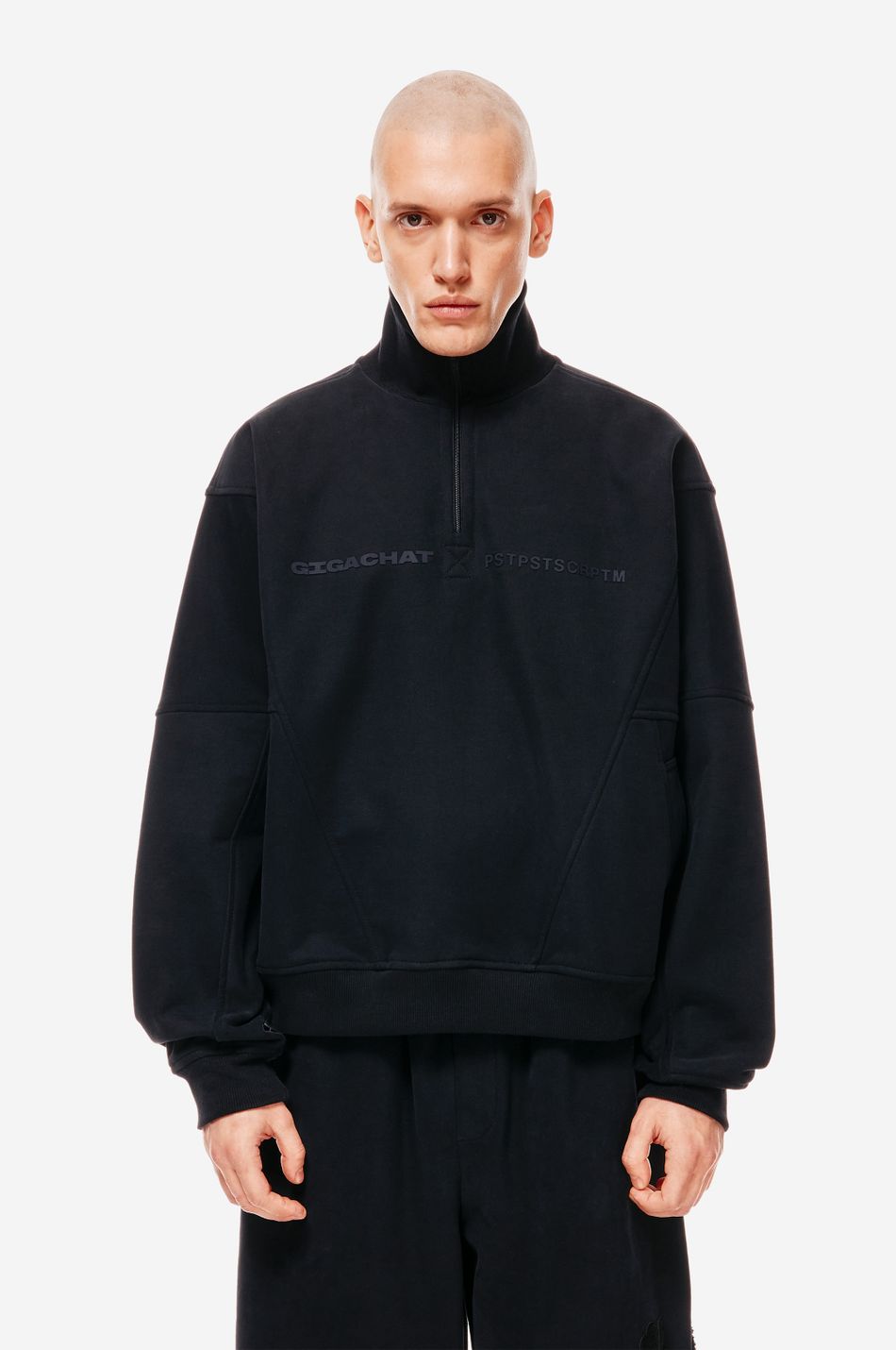 Фирменная вышивка post post scriptum на груди и патч-манифест подчёркивают эстетику бренда.