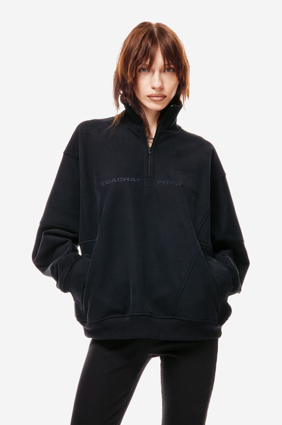 Фирменный крой с пониженной линией плеч, воротник-стойка на молнии.