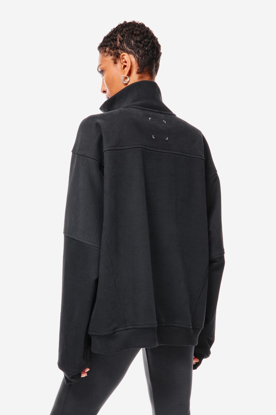 По низу и рукавам — мягкая резинка, удерживающая форму и подчёркивающая силуэт.