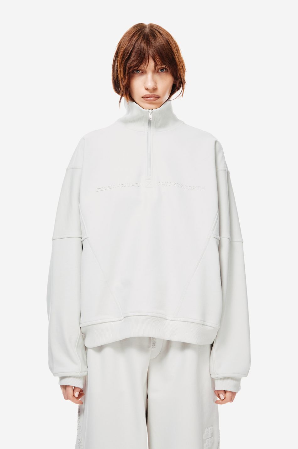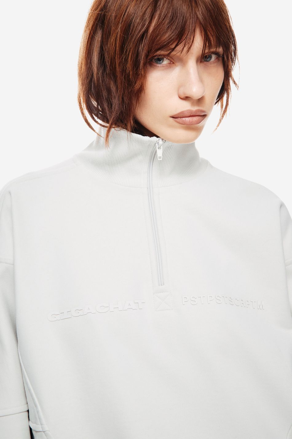Фирменный крой с пониженной линией плеч, воротник-стойка на молнии. По низу и рукавам — мягкая резинка, удерживающая форму и подчёркивающая силуэт. Фирменная вышивка post post scriptum на груди и патч-манифест подчёркивают эстетику бренда. Сочетайте с брюками или денимом из новой коллекции