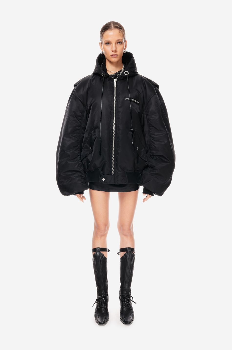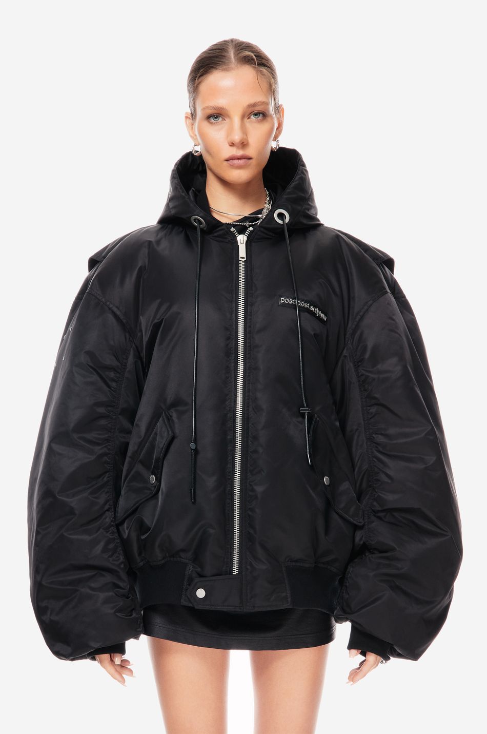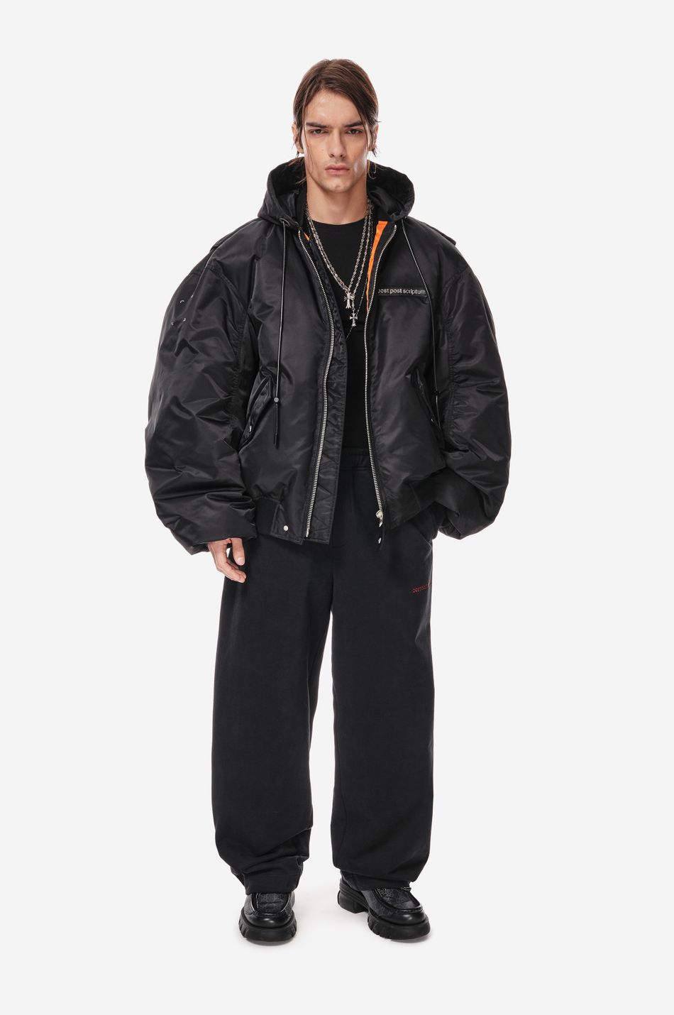 UNIT 28 — архивный силуэт в современной интерпретации. оверсайз-бомбер из экологичного нейлона с пуховым утеплением. узнаваемые коды бренда: металлический логотип, вышитые скобки, гравировка на фурнитуре. создан для температур до -25°C.