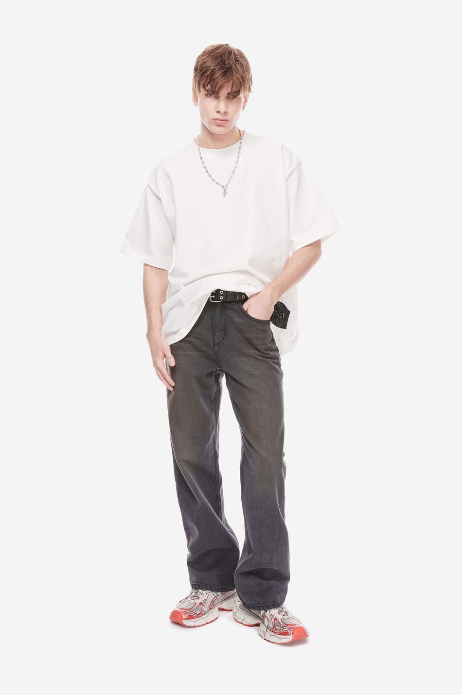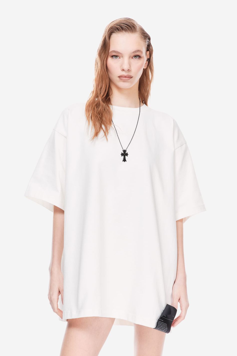 футболка силуэта oversize из плотного хлопка. модель с круглой горловиной и широкими рукавами дополнена спереди логотипом бренда, составленным из прорезиненных букв PSTPSTSCRPTM.
