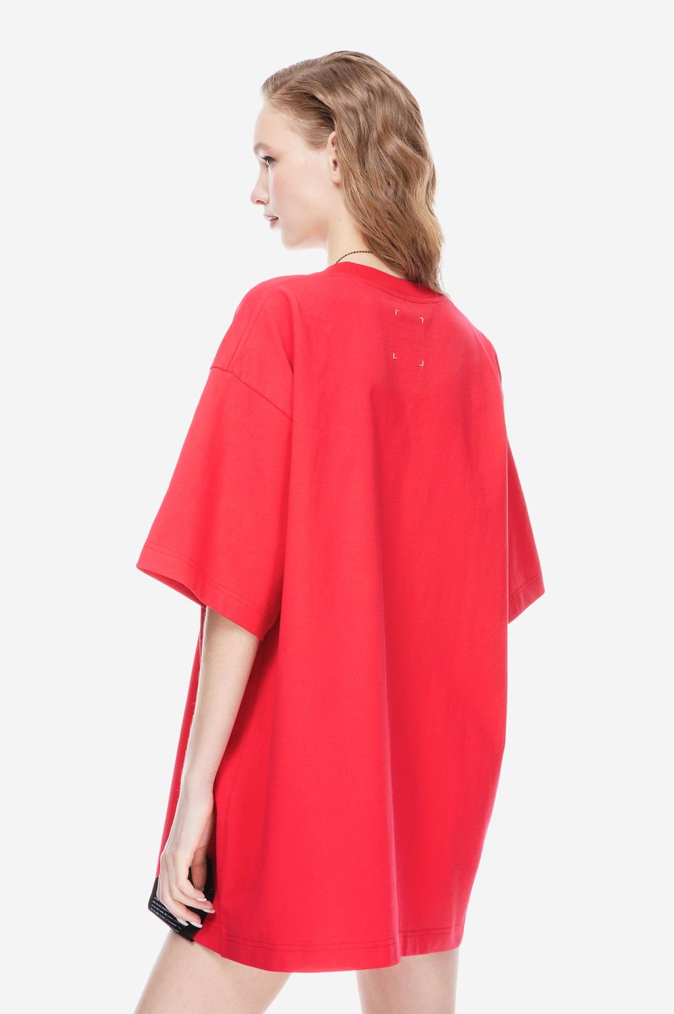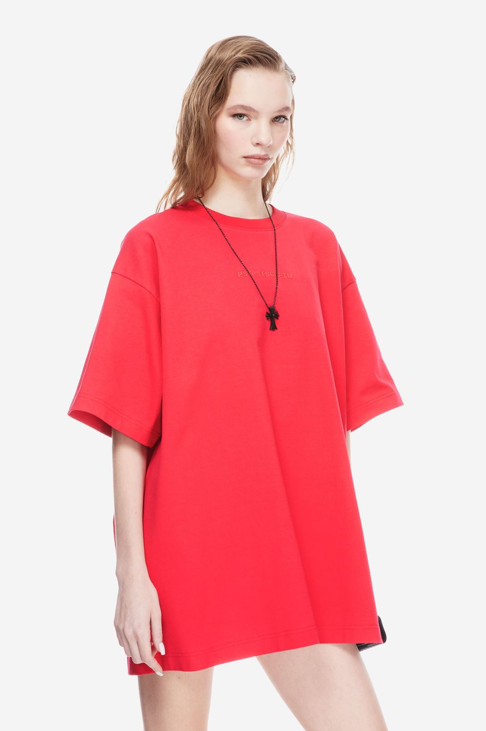 футболка силуэта oversize из плотного хлопка. модель с круглой горловиной и широкими рукавами дополнена спереди логотипом бренда, составленным из прорезиненных букв PSTPSTSCRPTM.