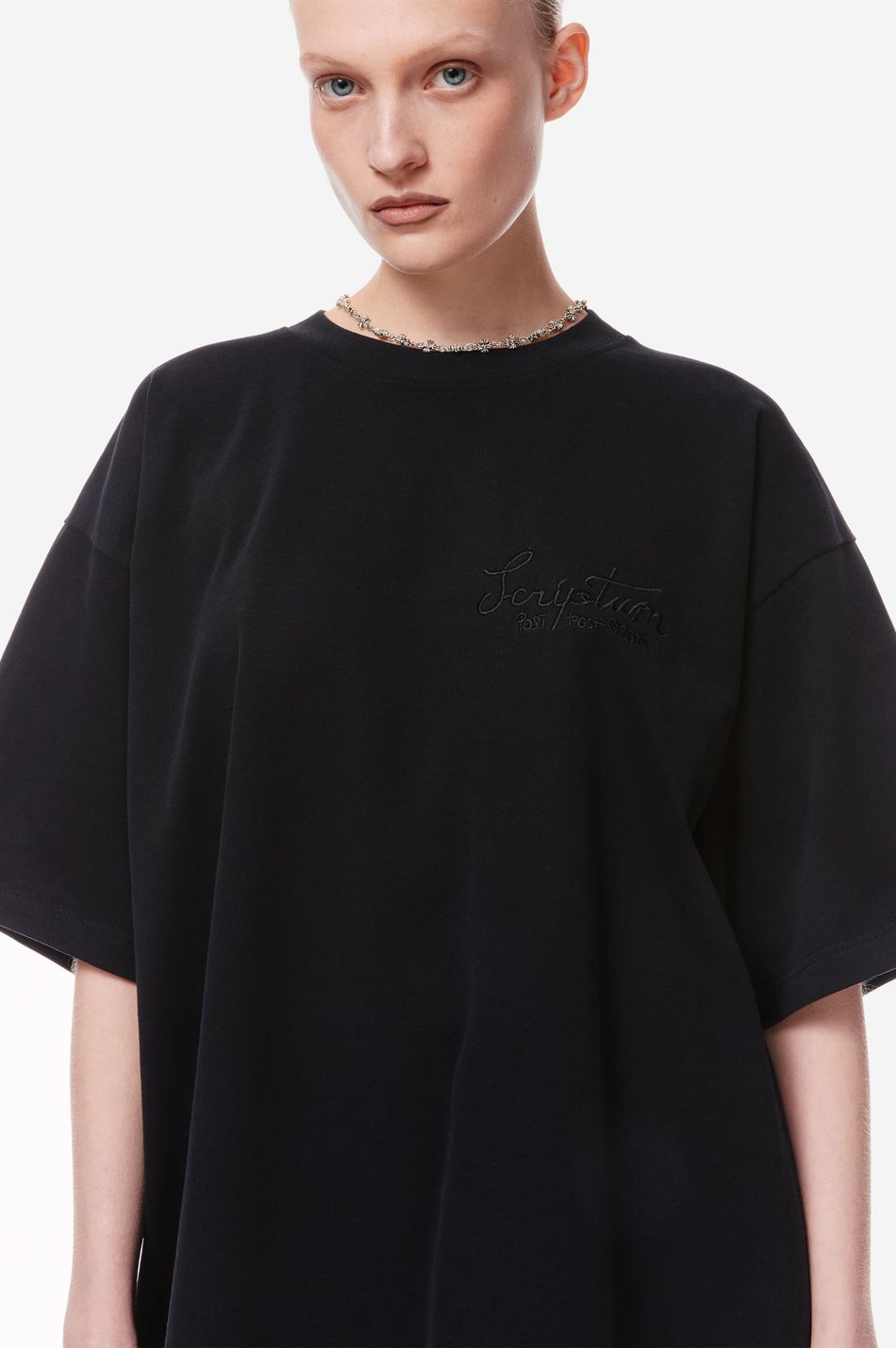 Базовая футболка силуэта oversize из плотного 100 % хлопка. Модель с круглой горловиной и широкими рукавами. Вышитый логотип pstpstscrptm и фирменный патч-манифест подчеркивают эстетику бренда. Стилизуйте с джинсами или джоггерами из новой коллекции