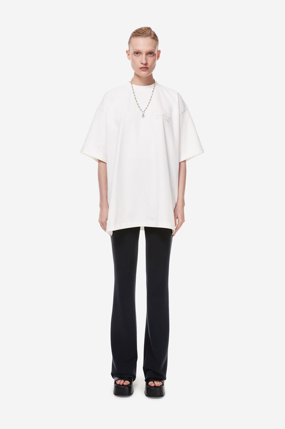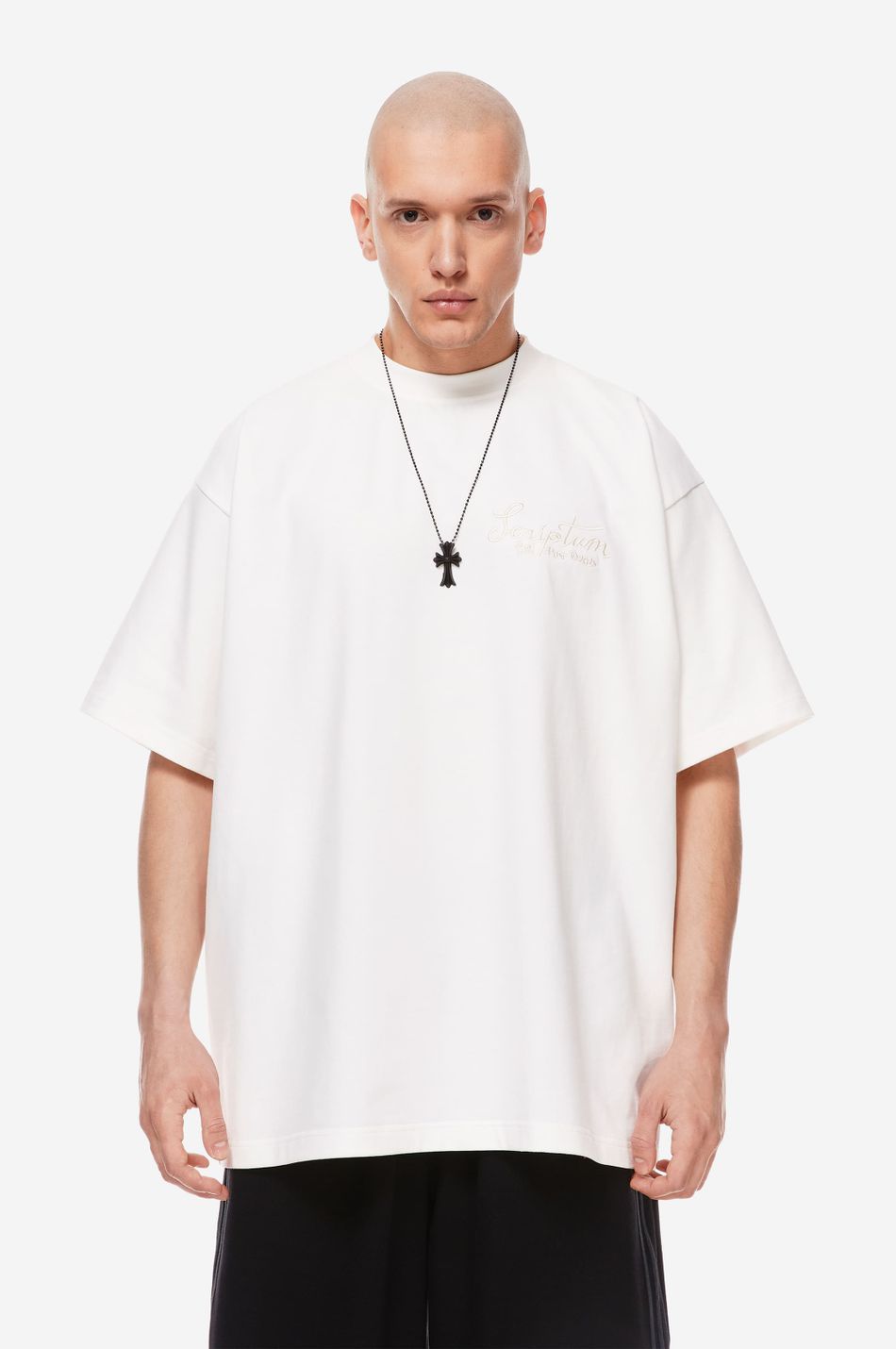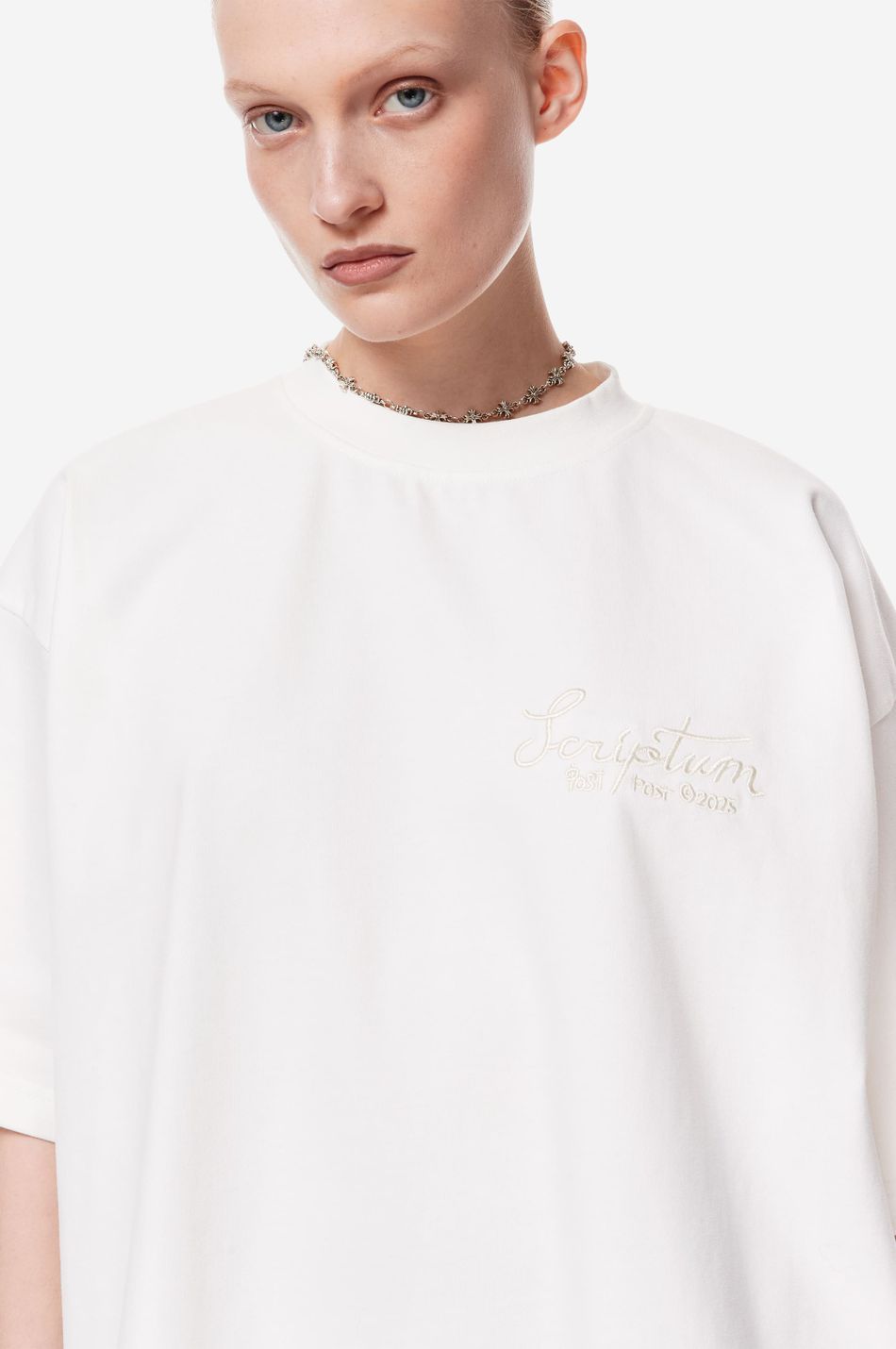 Базовая футболка силуэта oversize из плотного 100 % хлопка. Модель с круглой горловиной и широкими рукавами. Вышитый логотип pstpstscrptm и фирменный патч-манифест подчеркивают эстетику бренда. Стилизуйте с джинсами или джоггерами из новой коллекции