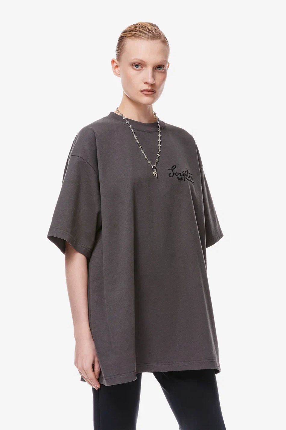 Базовая футболка силуэта oversize из плотного 100 % хлопка. Модель с круглой горловиной и широкими рукавами. Вышитый логотип pstpstscrptm и фирменный патч-манифест подчеркивают эстетику бренда. Стилизуйте с джинсами или джоггерами из новой коллекции
