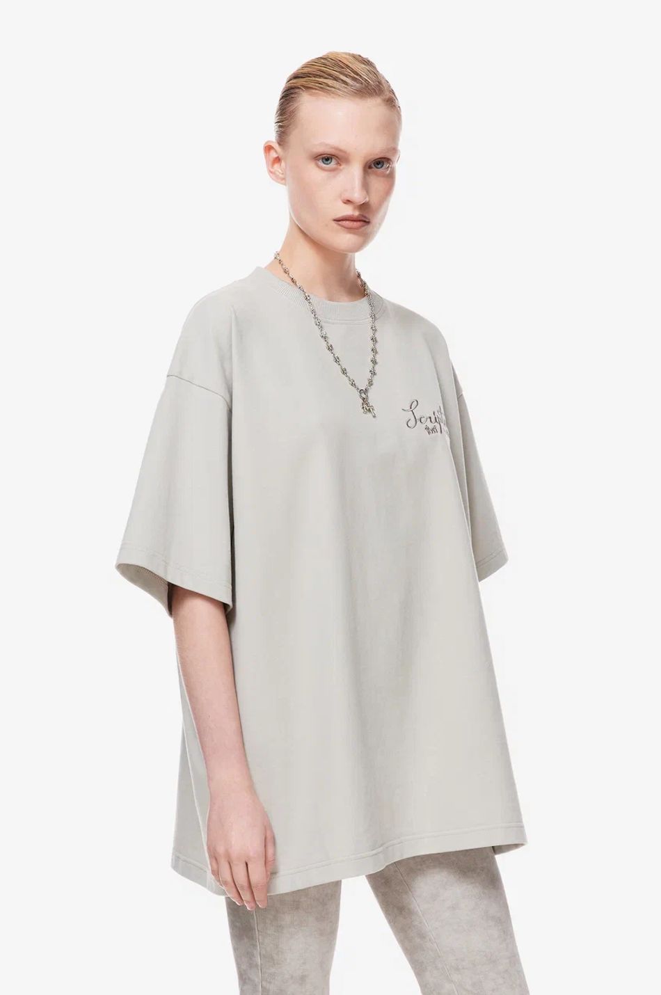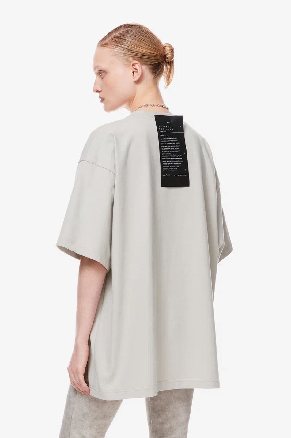 Базовая футболка силуэта oversize из плотного 100 % хлопка. Модель с круглой горловиной и широкими рукавами. Вышитый логотип pstpstscrptm и фирменный патч-манифест подчеркивают эстетику бренда. Стилизуйте с джинсами или джоггерами из новой коллекции