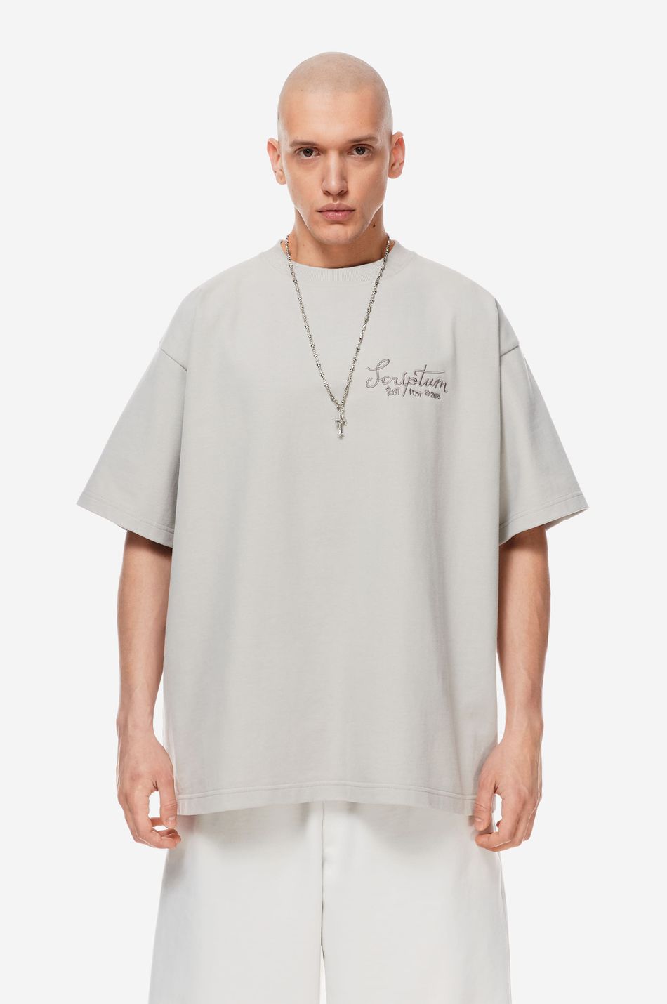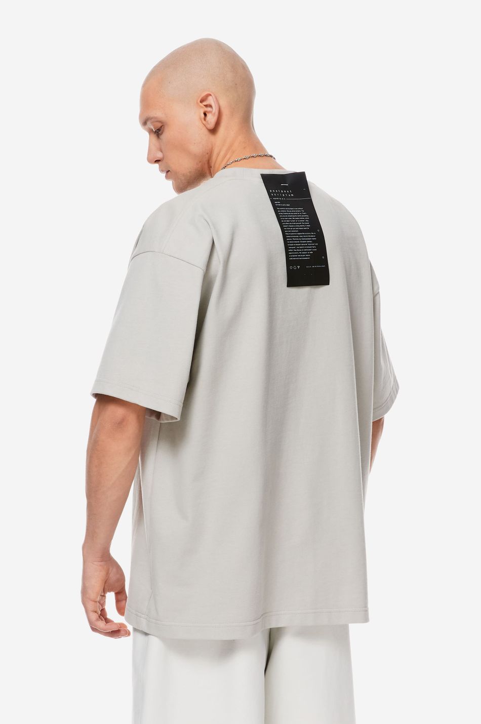 Базовая футболка силуэта oversize из плотного 100 % хлопка. Модель с круглой горловиной и широкими рукавами. Вышитый логотип pstpstscrptm и фирменный патч-манифест подчеркивают эстетику бренда. Стилизуйте с джинсами или джоггерами из новой коллекции