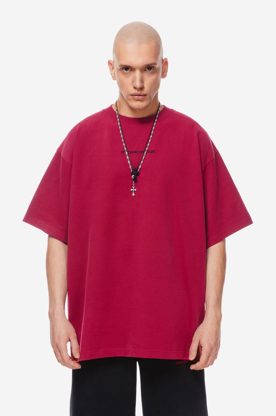 Базовая футболка силуэта oversize из плотного 100 % хлопка. Модель с круглой горловиной и широкими рукавами. Вышитый логотип pstpstscrptm и фирменный патч-манифест подчеркивают эстетику бренда. Стилизуйте с джинсами или джоггерами из новой коллекции