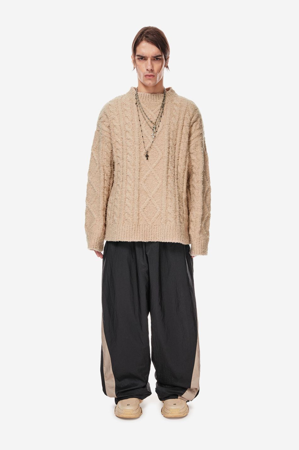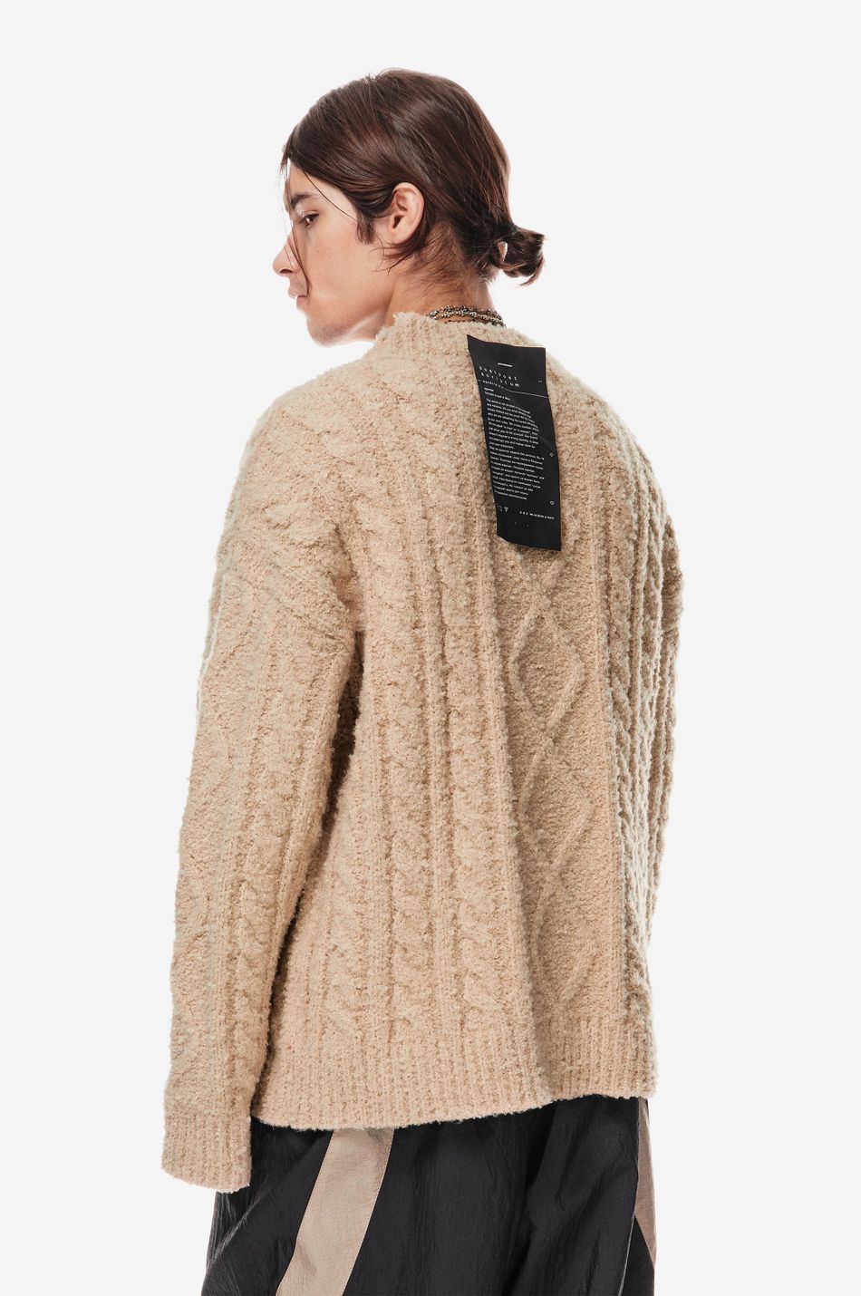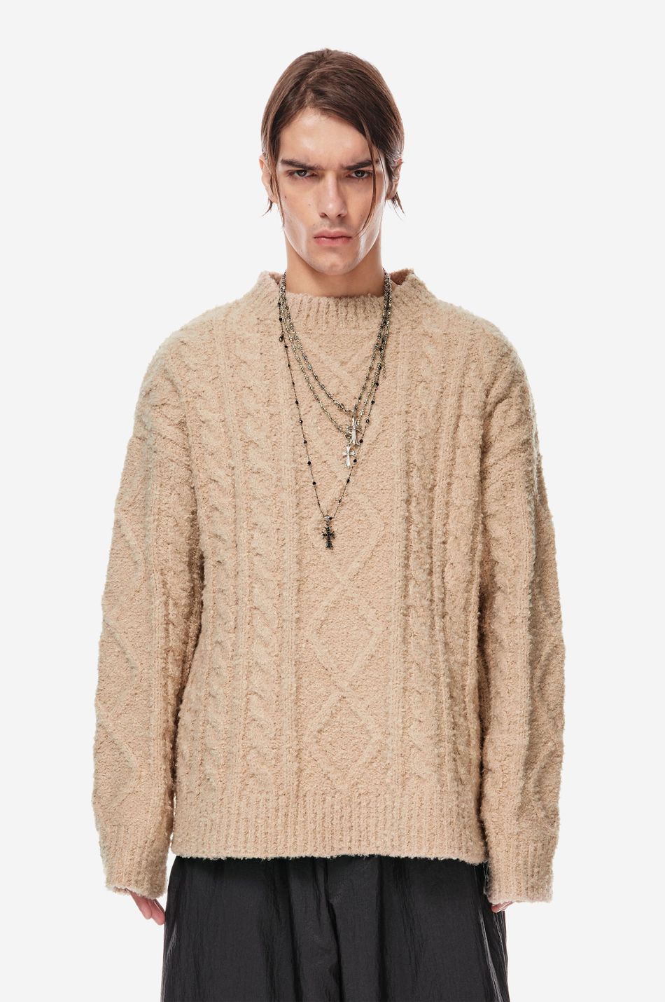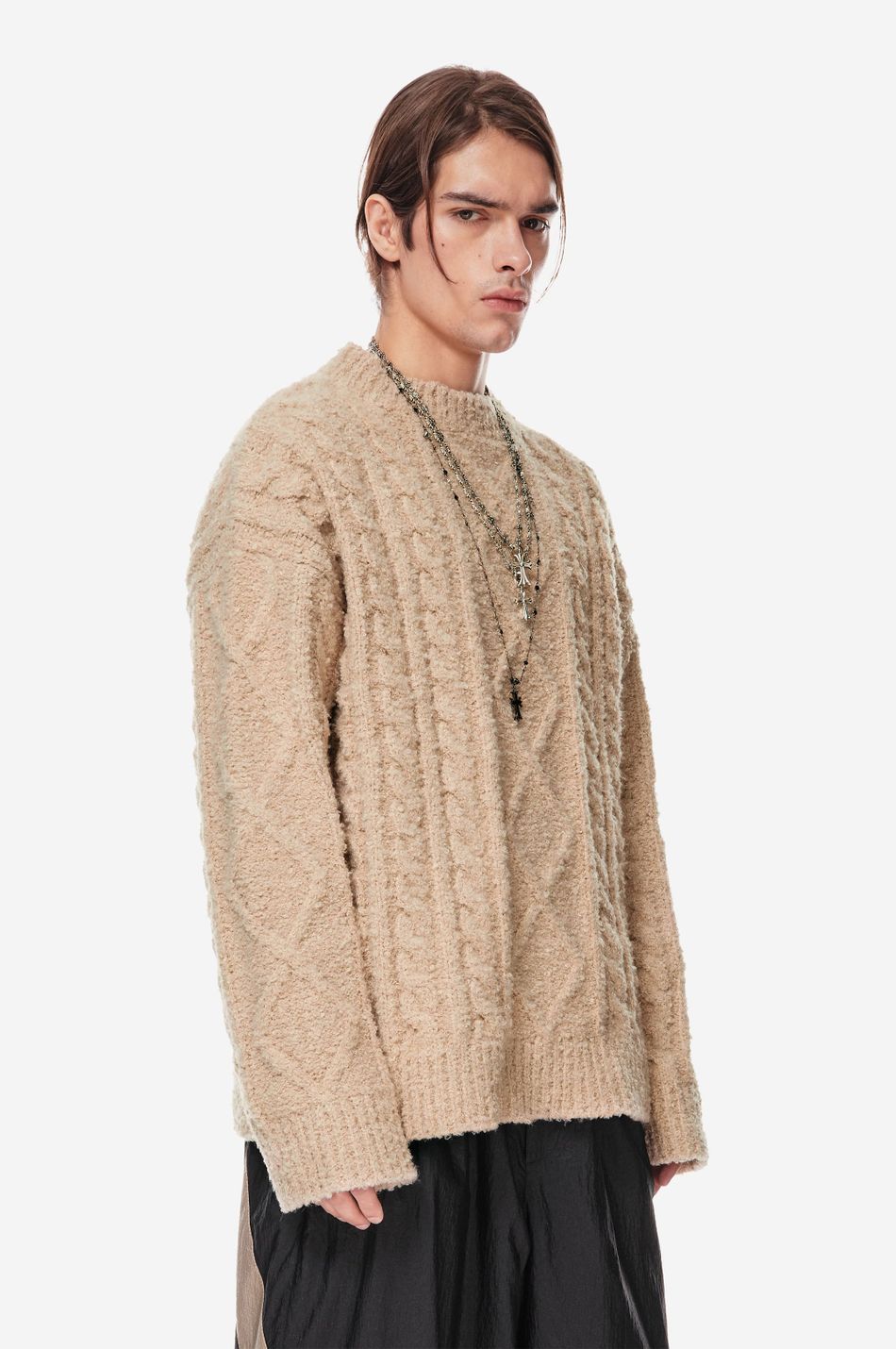 свитер оверсайз из буклированной пряжи выразительных оттенков. массивные «косы» в орнаменте создают гипертекстуру и навевают ностальгическое настроение. комфортный и теплый, он может быть как самостоятельным акцентом в образе, так и отлично сочетаться с верхними слоями.
