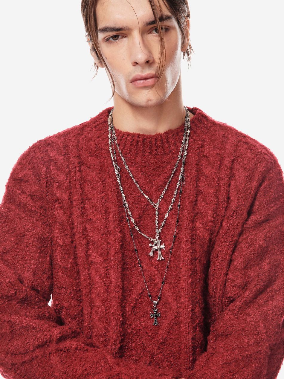 свитер оверсайз из буклированной пряжи выразительных оттенков. массивные «косы» в орнаменте создают гипертекстуру и навевают ностальгическое настроение. комфортный и теплый, он может быть как самостоятельным акцентом в образе, так и отлично сочетаться с верхними слоями.