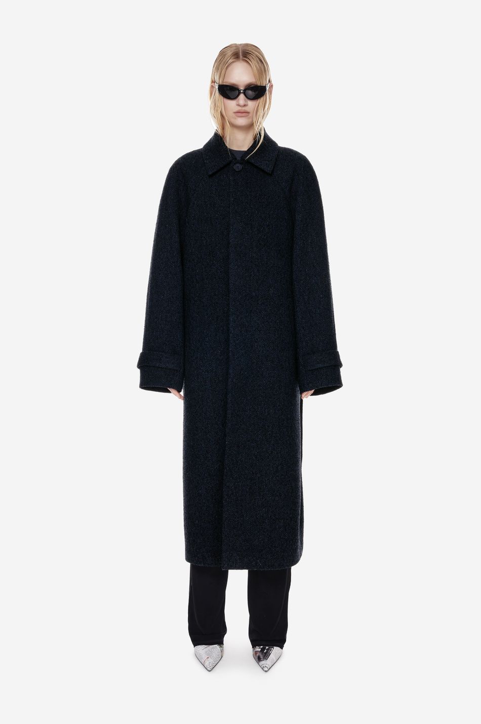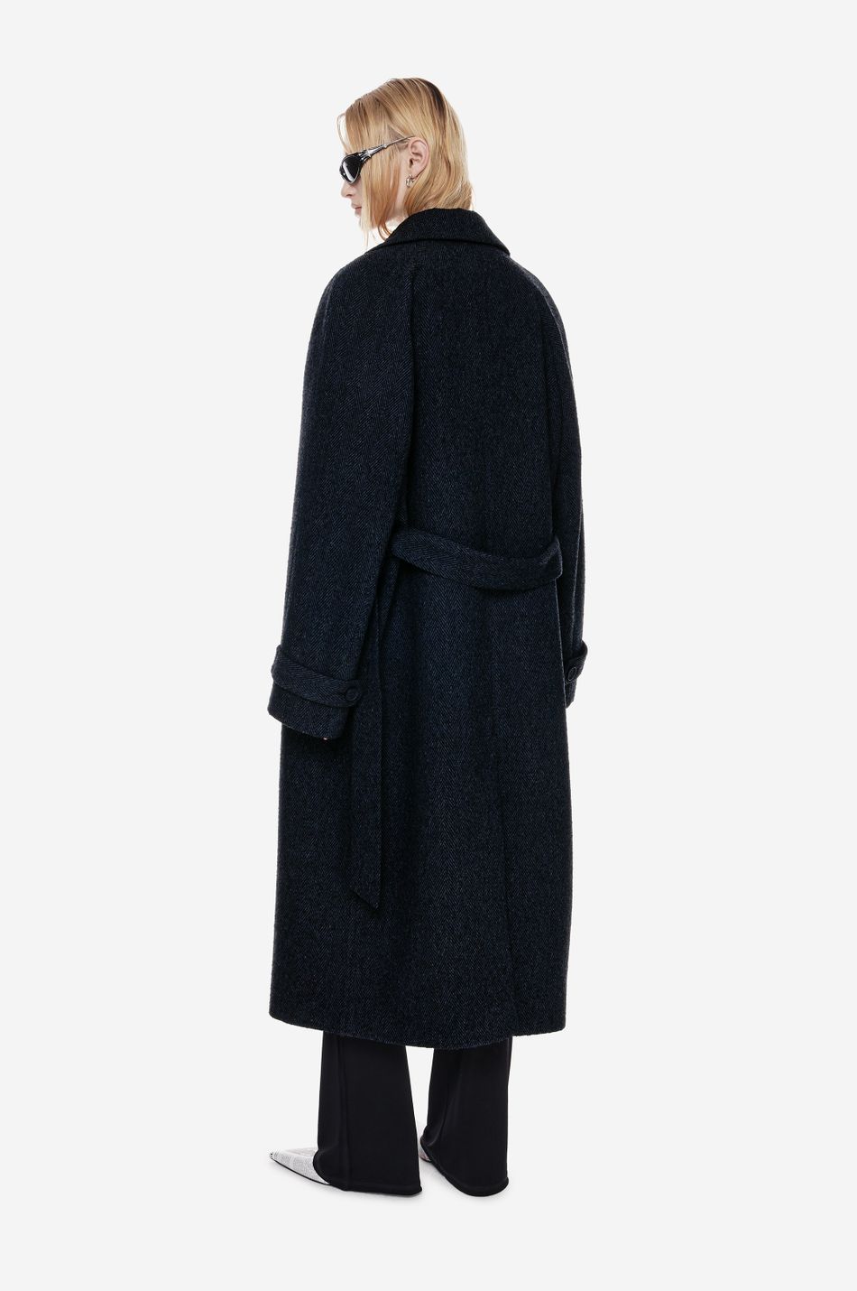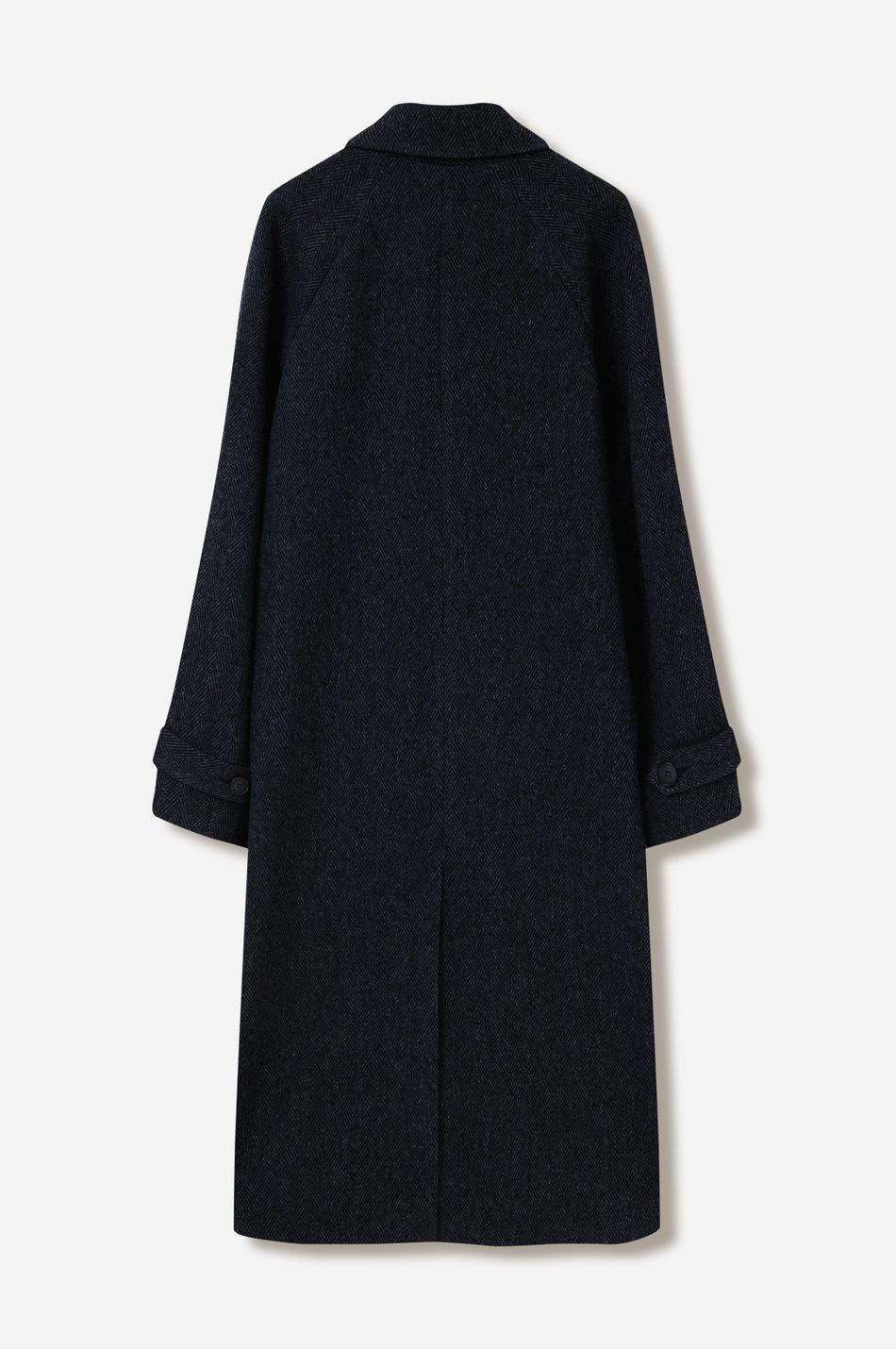 пальто из фактурной шерсти с графикой «ёлочка». тихая архитектура силуэта. удлинённая форма, мягкая линия плеча, пояс как инструмент трансформации. классика, лишённая привычной строгости.