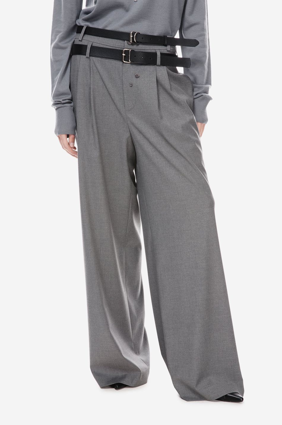 Широкие брюки с двойным поясом