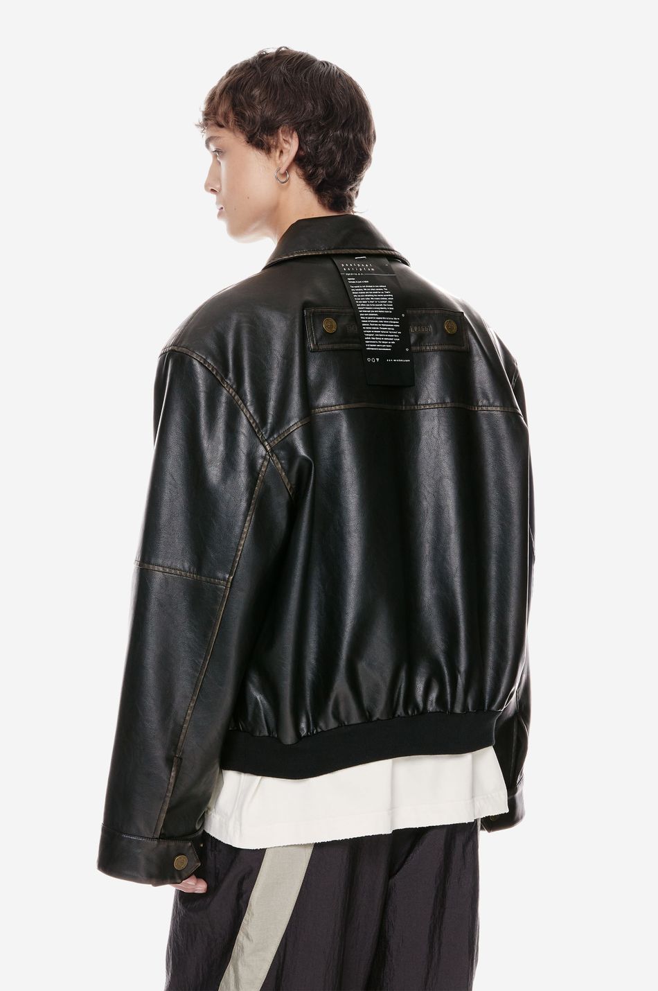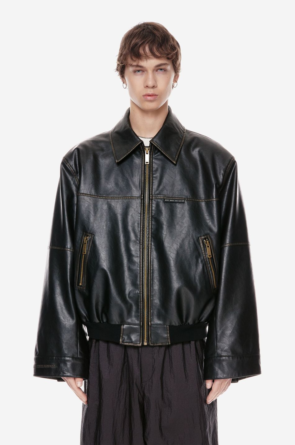 бомбер «signal» из веган-кожи, выстиранная и состаренная вручную на швах. вдохновленная мотокультурой модель имеет грубый силуэт: преувеличенная линия плеча, широкая пройма. резинка по низу айтема обеспечивает идеальную посадку. массивная фурнитура и брендинг на рукаве завершает фирменный образ.