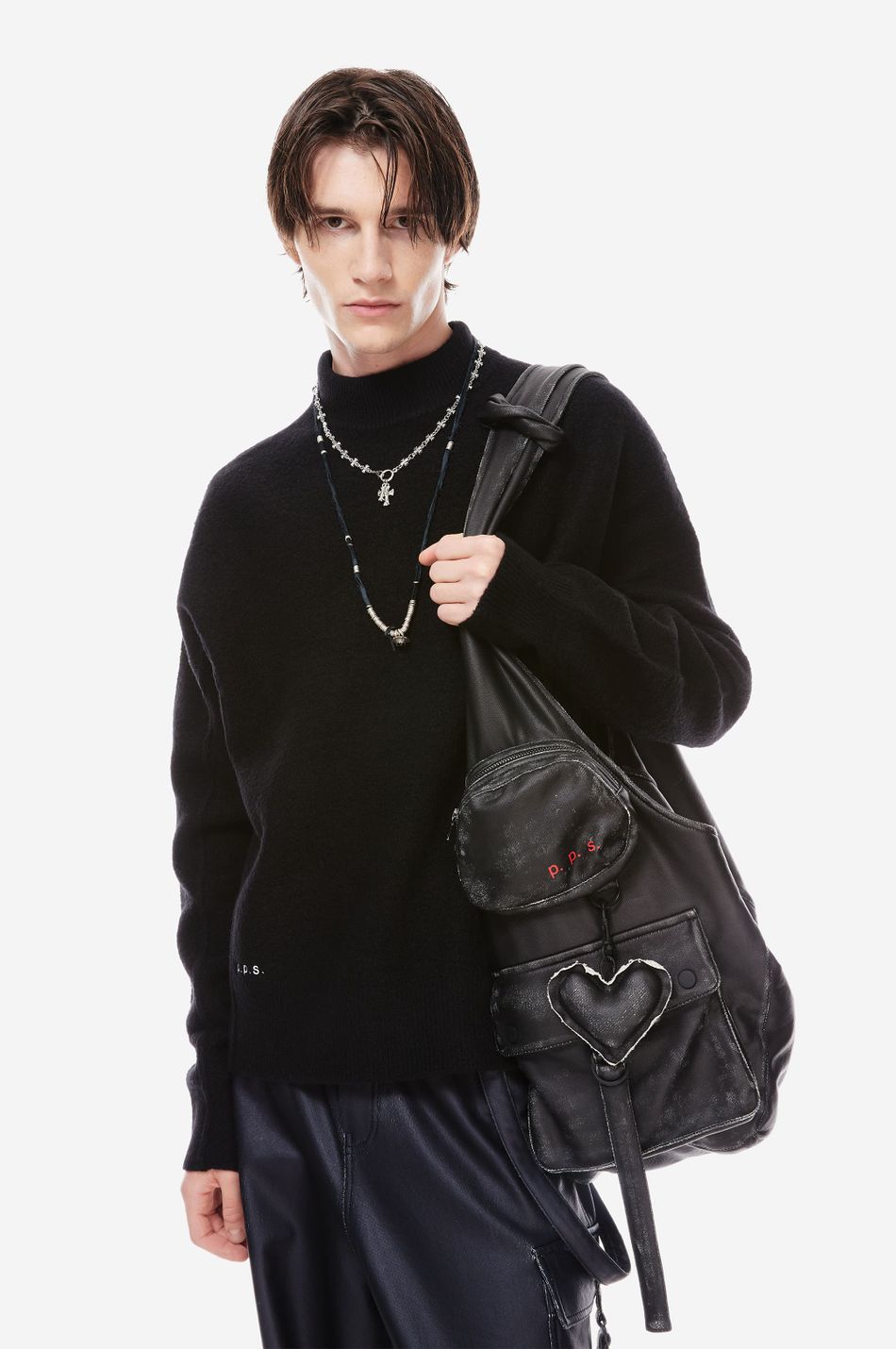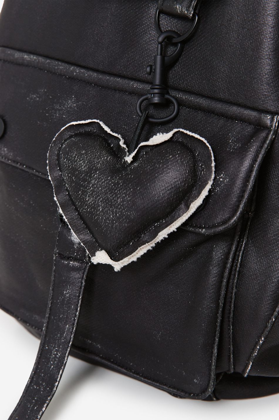 сумка мягкой формы с застежкой на магнитную кнопку, накладными карманами, с клапаном и карманом на молнии с боковой стороны. внутренняя часть сумки с карманом на молнии. эстетику бренда подчеркивает съемный брелок-сердце и патч-манифест