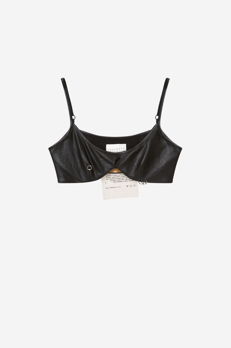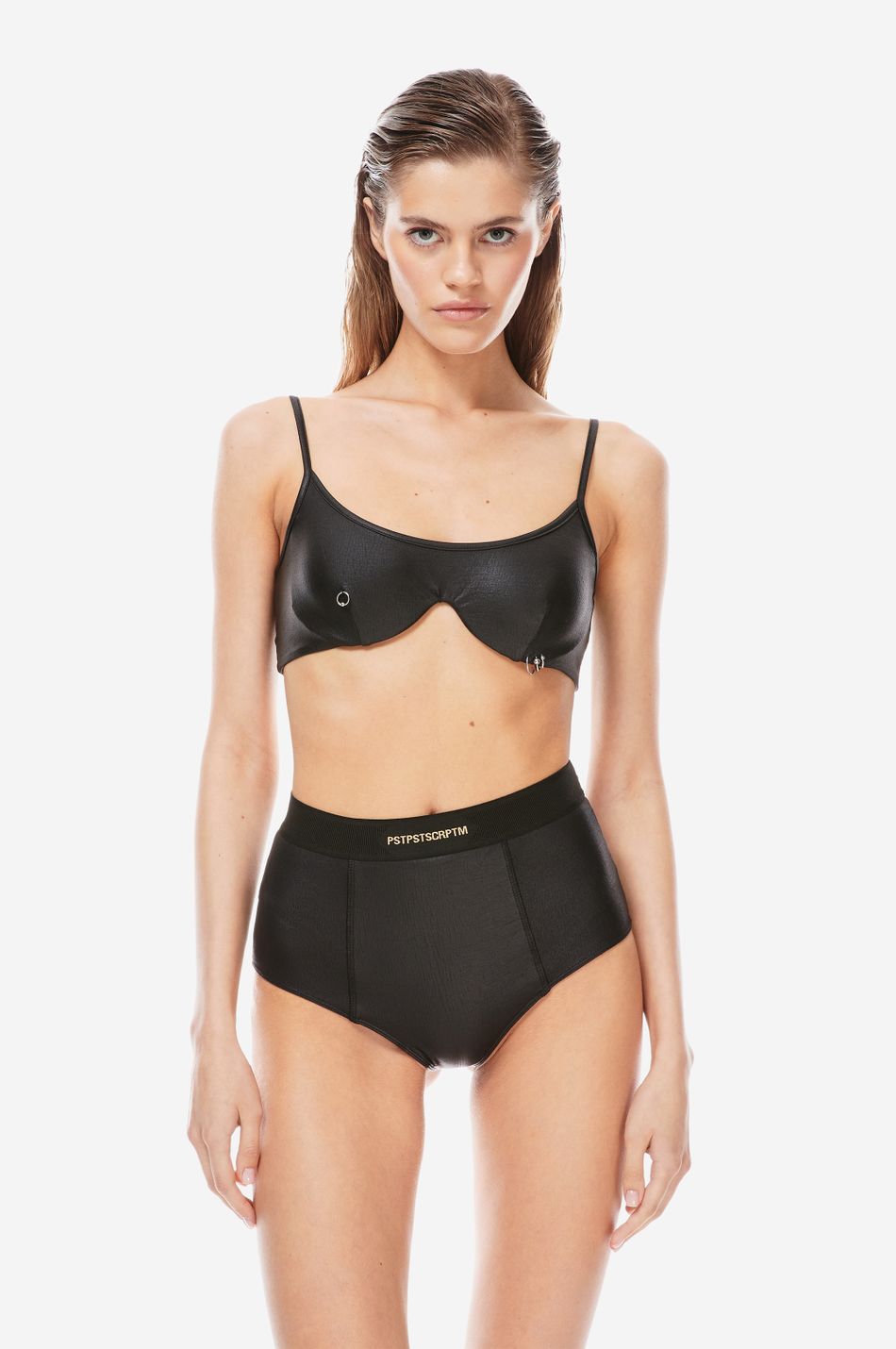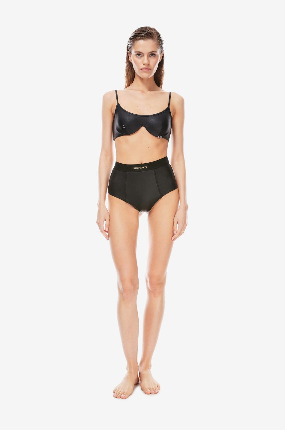 Топ-бандо с косточками выполнен из модала с напылением, создающим эффект металлизированного блеска.